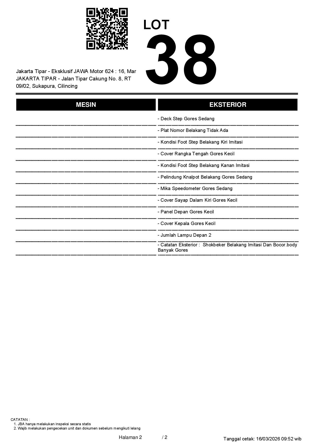 2. Peserta lelang wajib cek unit & dokumen