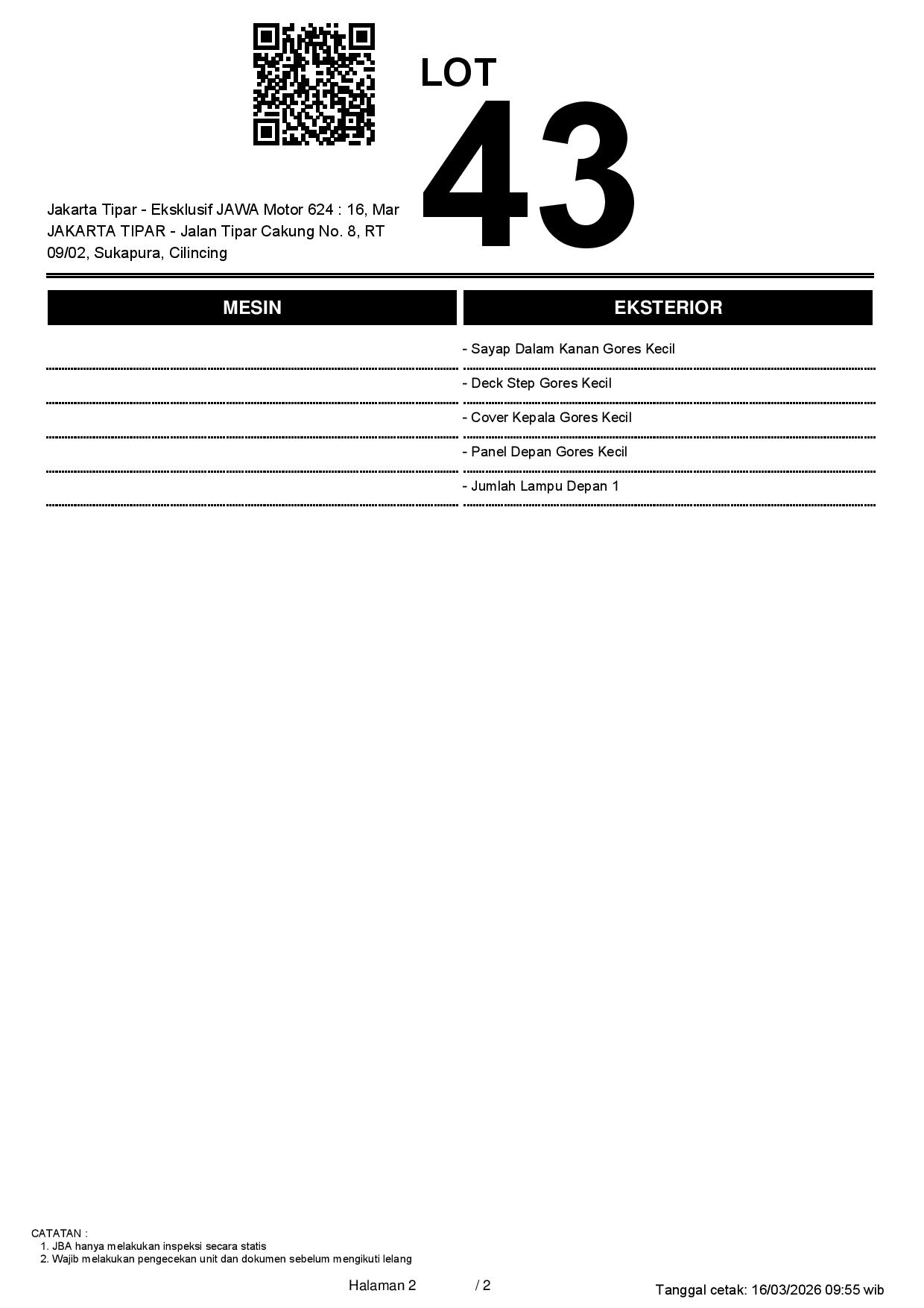 Tanggal Lelang: 16/03/2026 13:00 | WIB