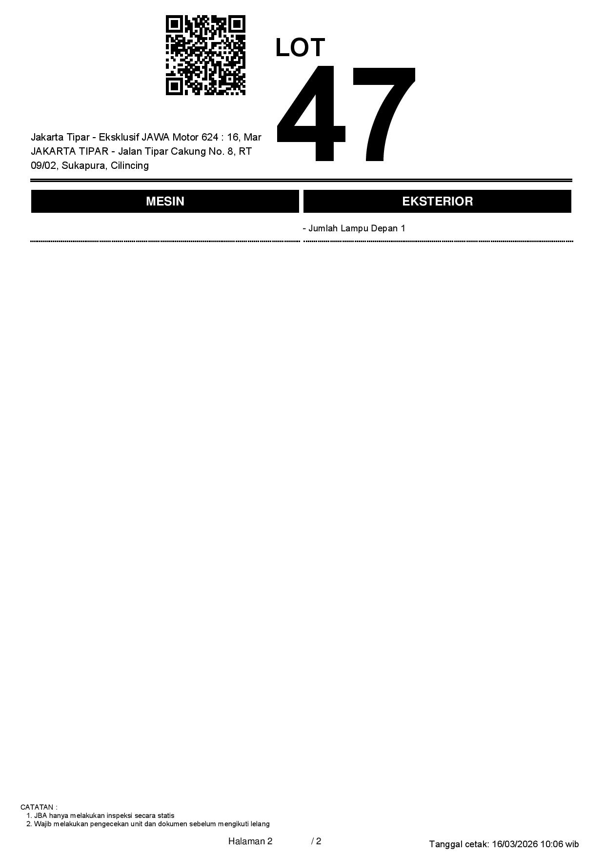 Tanggal Lelang: 16/03/2026 13:00 | WIB