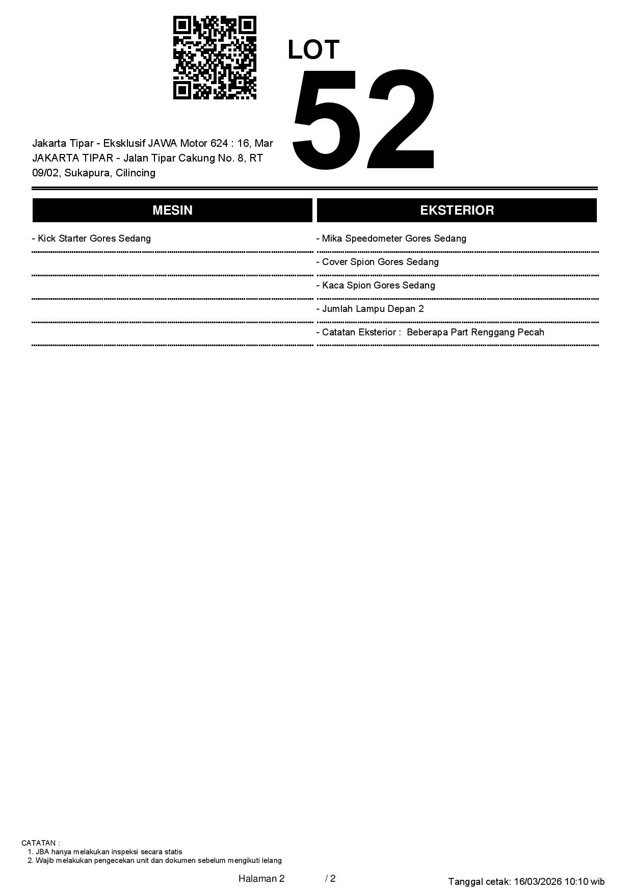 2. Peserta lelang wajib cek unit & dokumen
