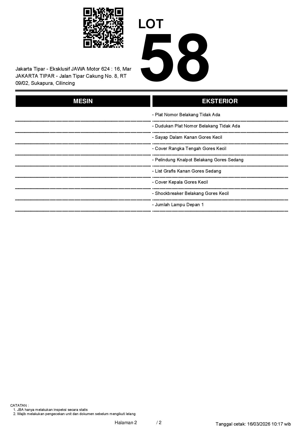 2. Peserta lelang wajib cek unit & dokumen