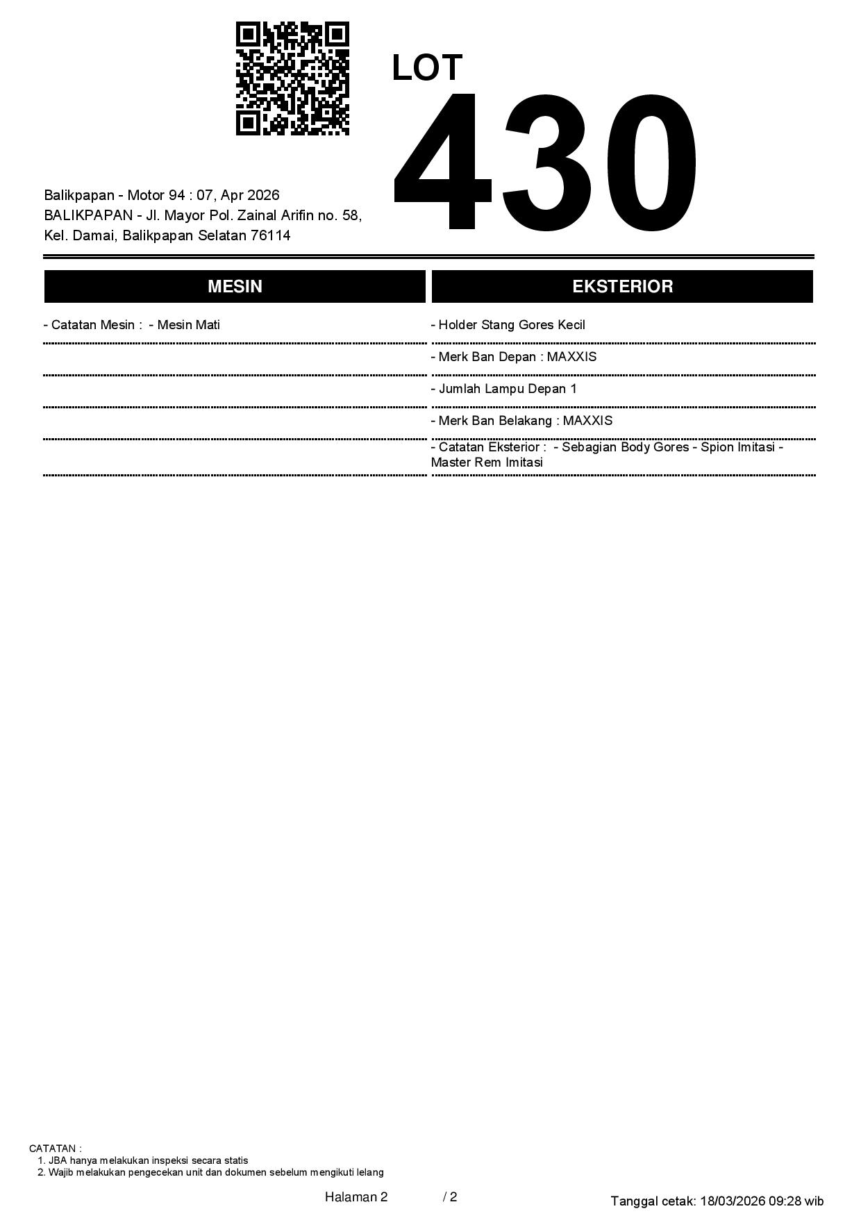 Tanggal Lelang: 07/04/2026 11:00 | WITA