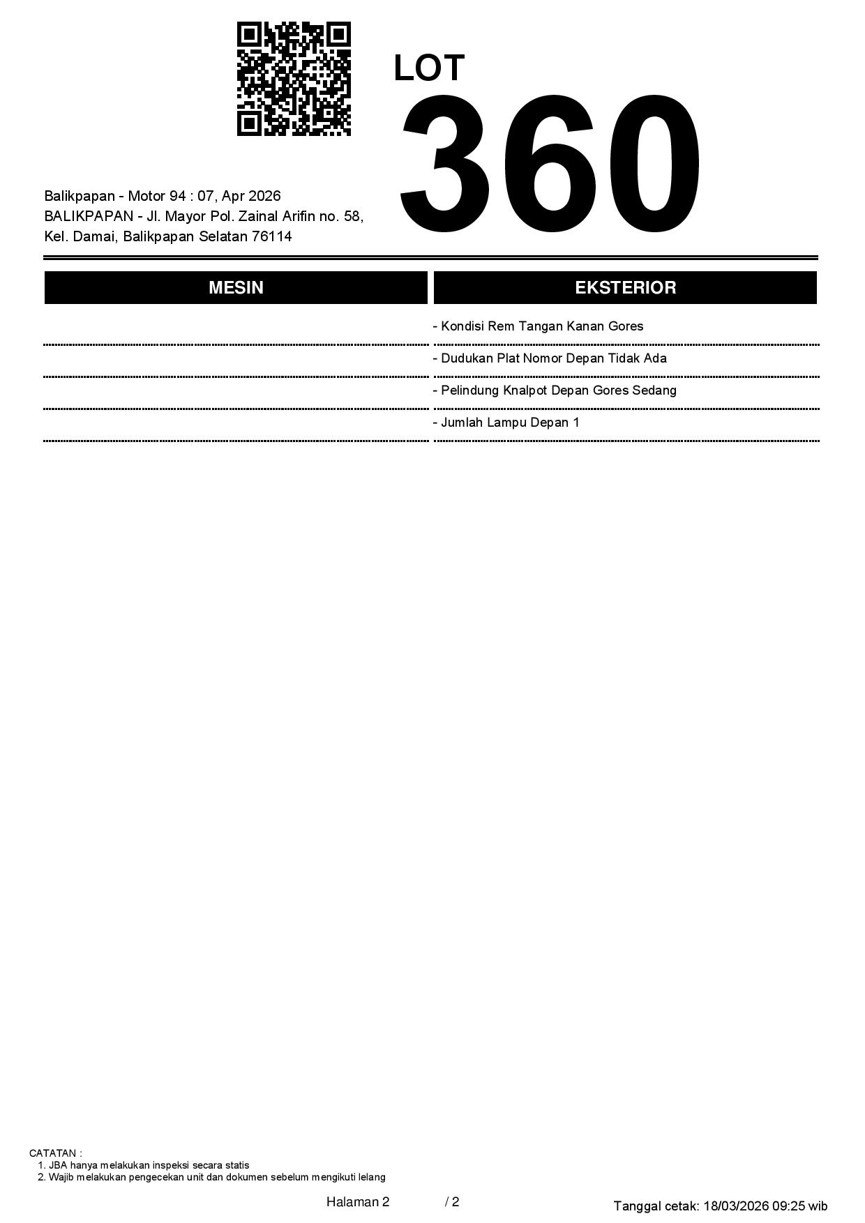 2. Peserta lelang wajib cek unit & dokumen