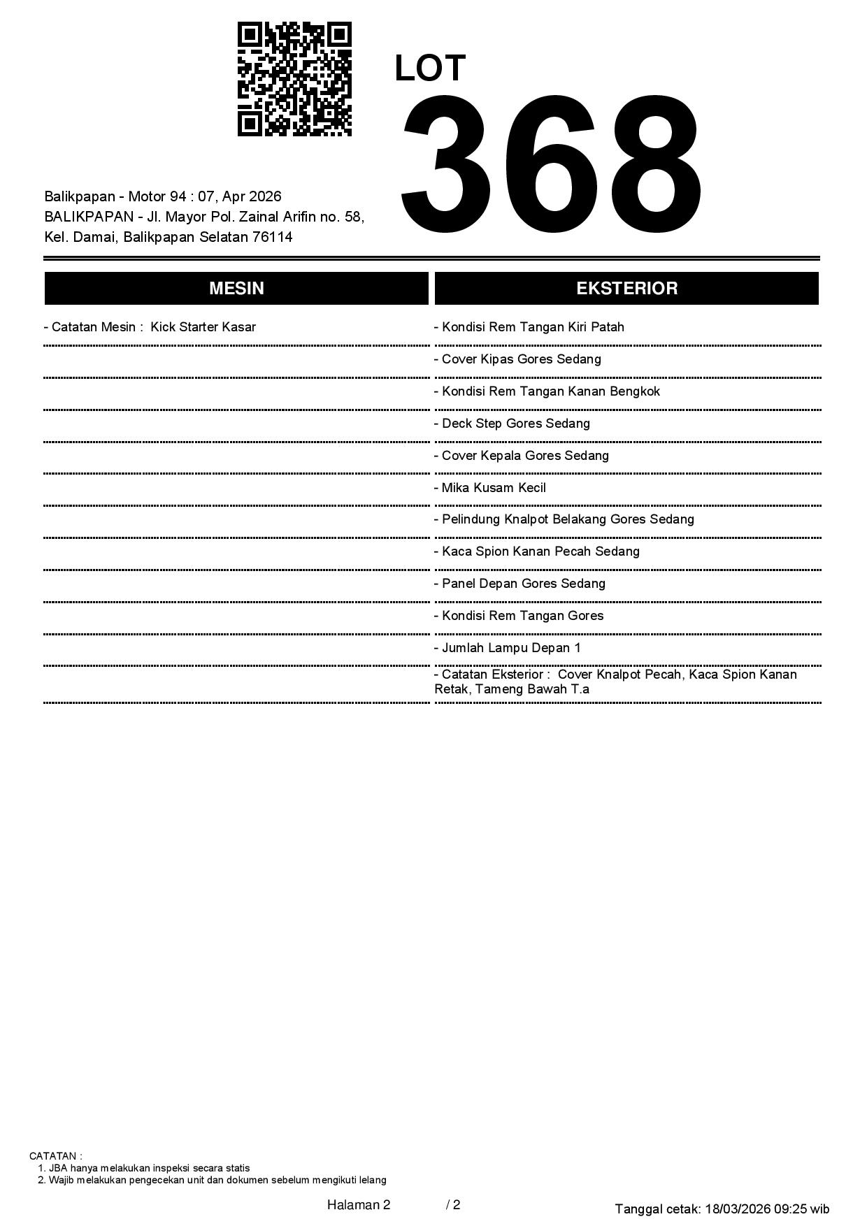 2. Peserta lelang wajib cek unit & dokumen