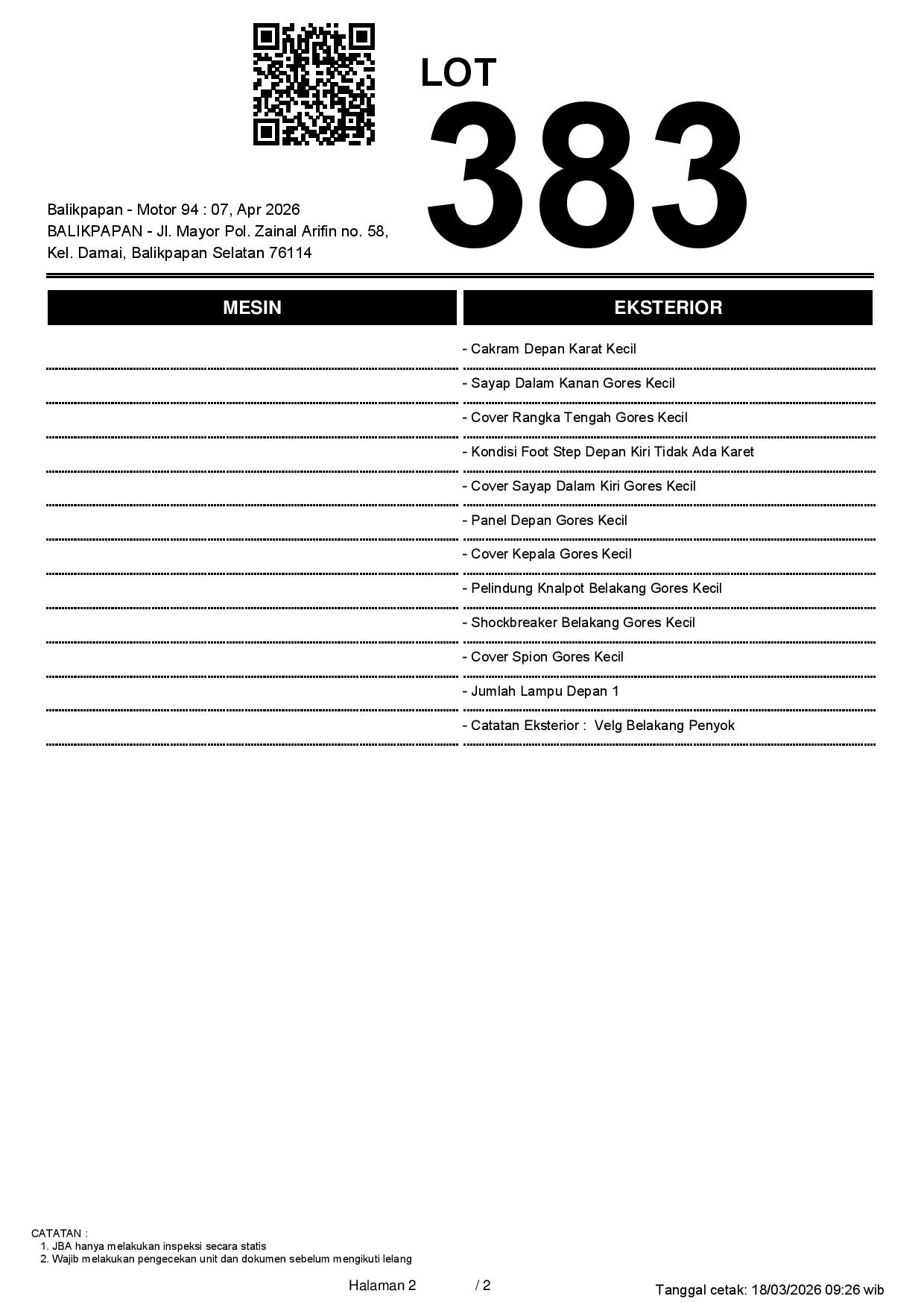2. Peserta lelang wajib cek unit & dokumen
