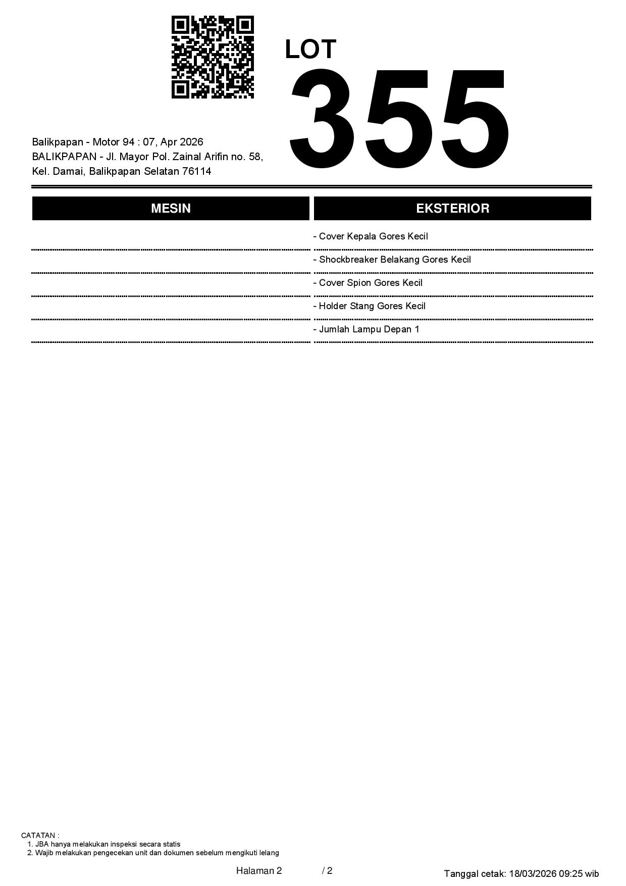 2. Peserta lelang wajib cek unit & dokumen