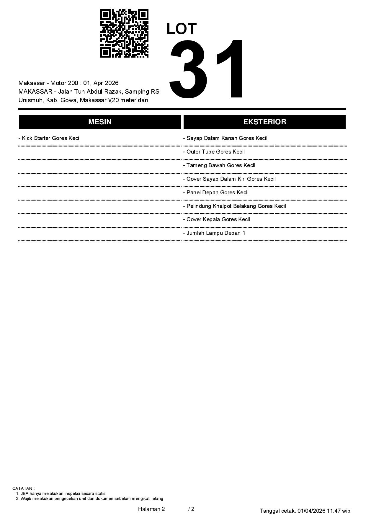 2. Peserta lelang wajib cek unit & dokumen