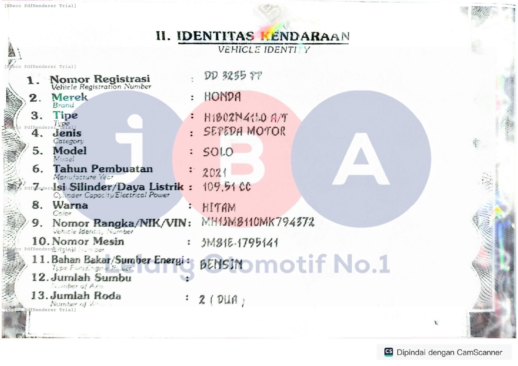 Nomor Rangka