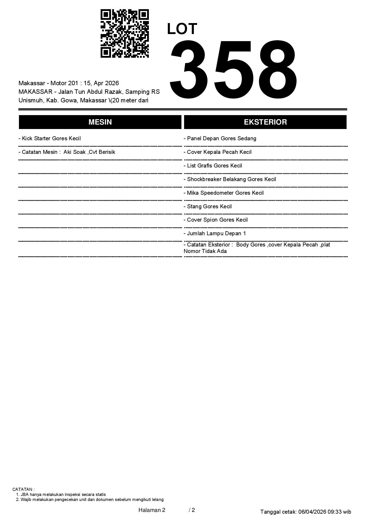 2. Peserta lelang wajib cek unit & dokumen