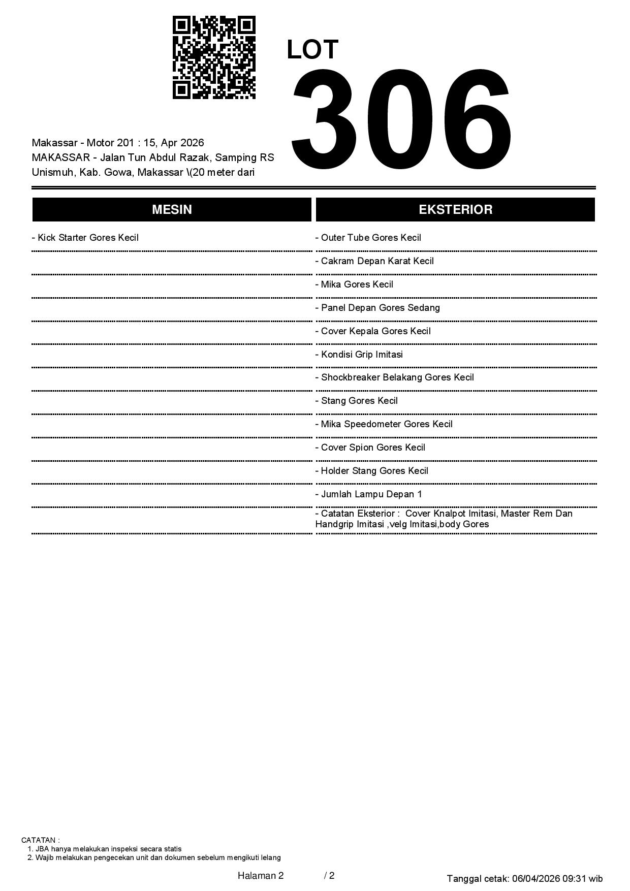 2. Peserta lelang wajib cek unit & dokumen