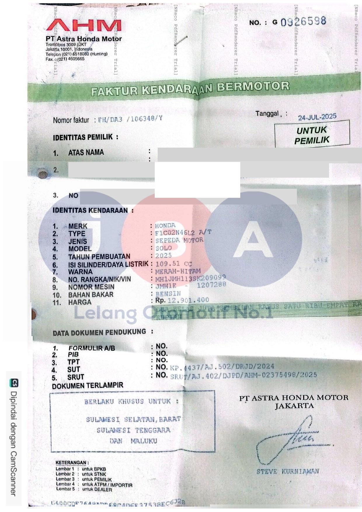 Nomor Rangka