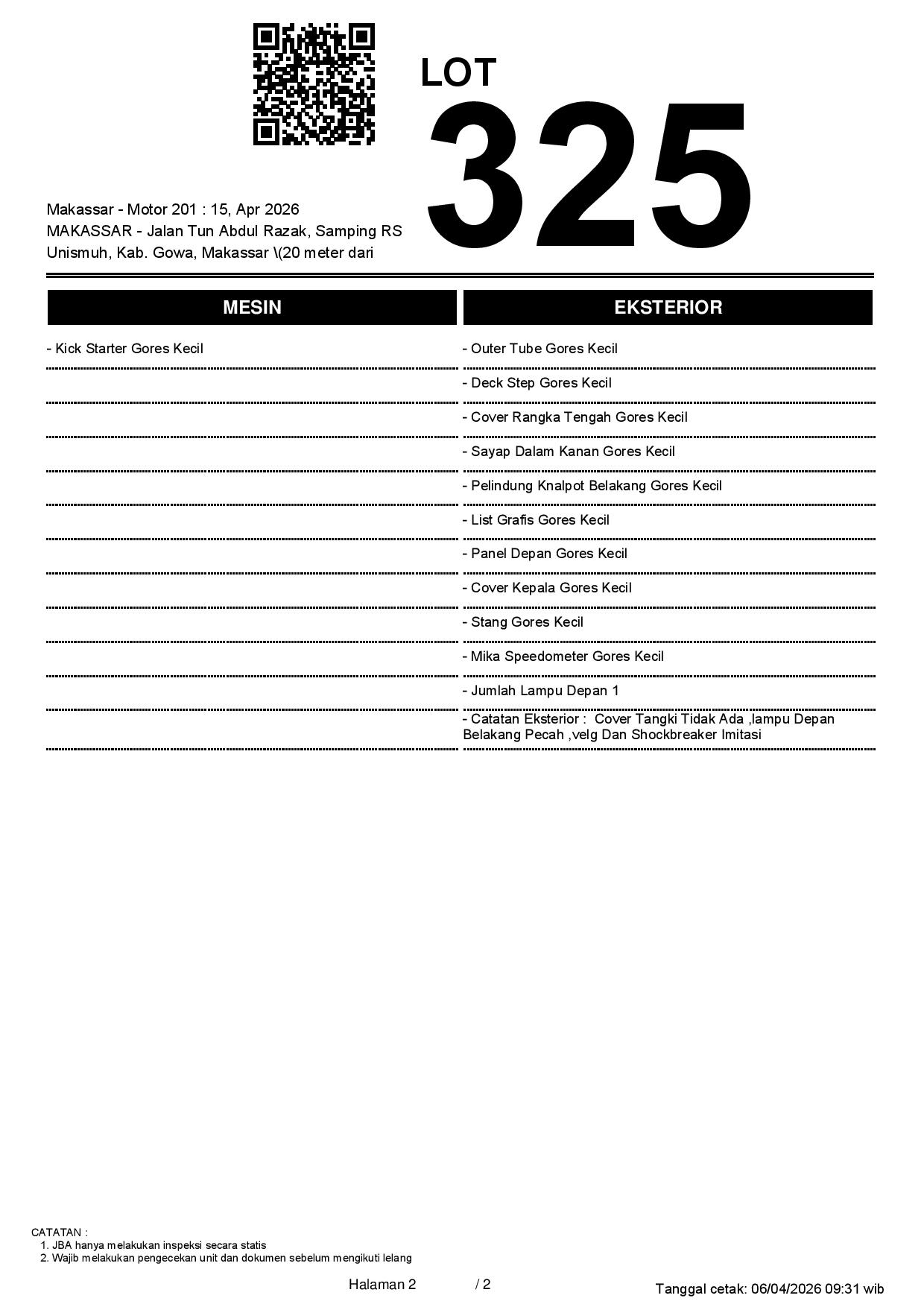 2. Peserta lelang wajib cek unit & dokumen