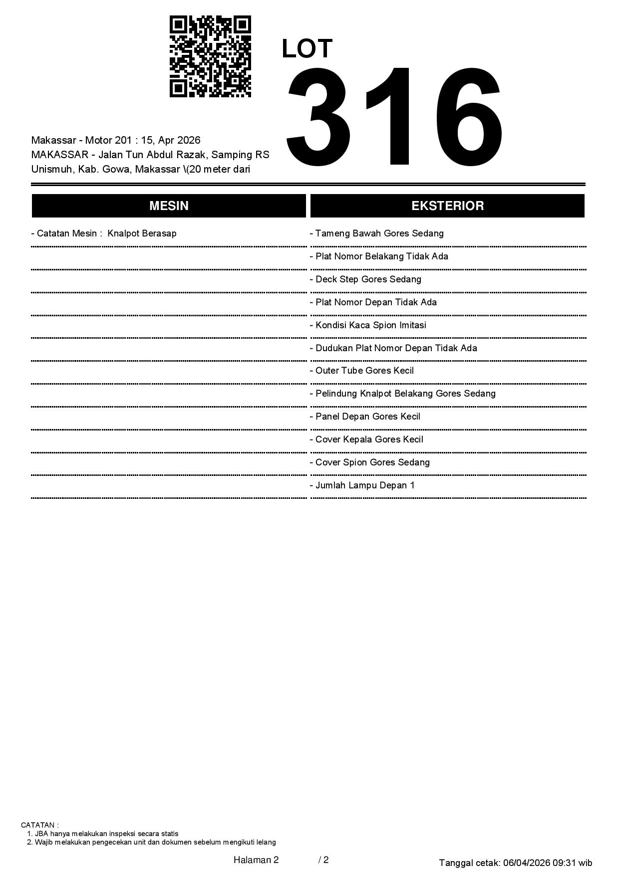 2. Peserta lelang wajib cek unit & dokumen