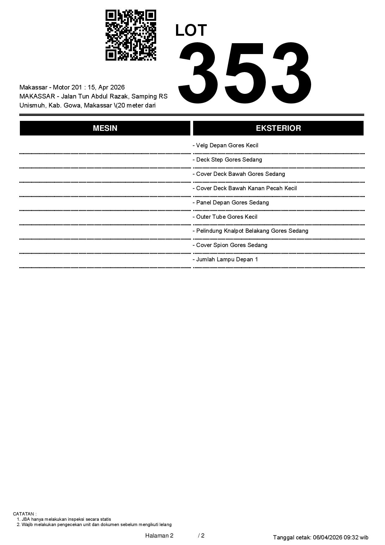 2. Peserta lelang wajib cek unit & dokumen