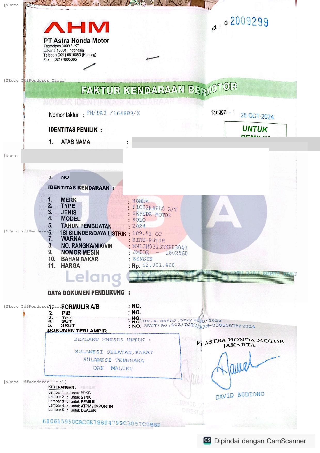 Nomor Rangka