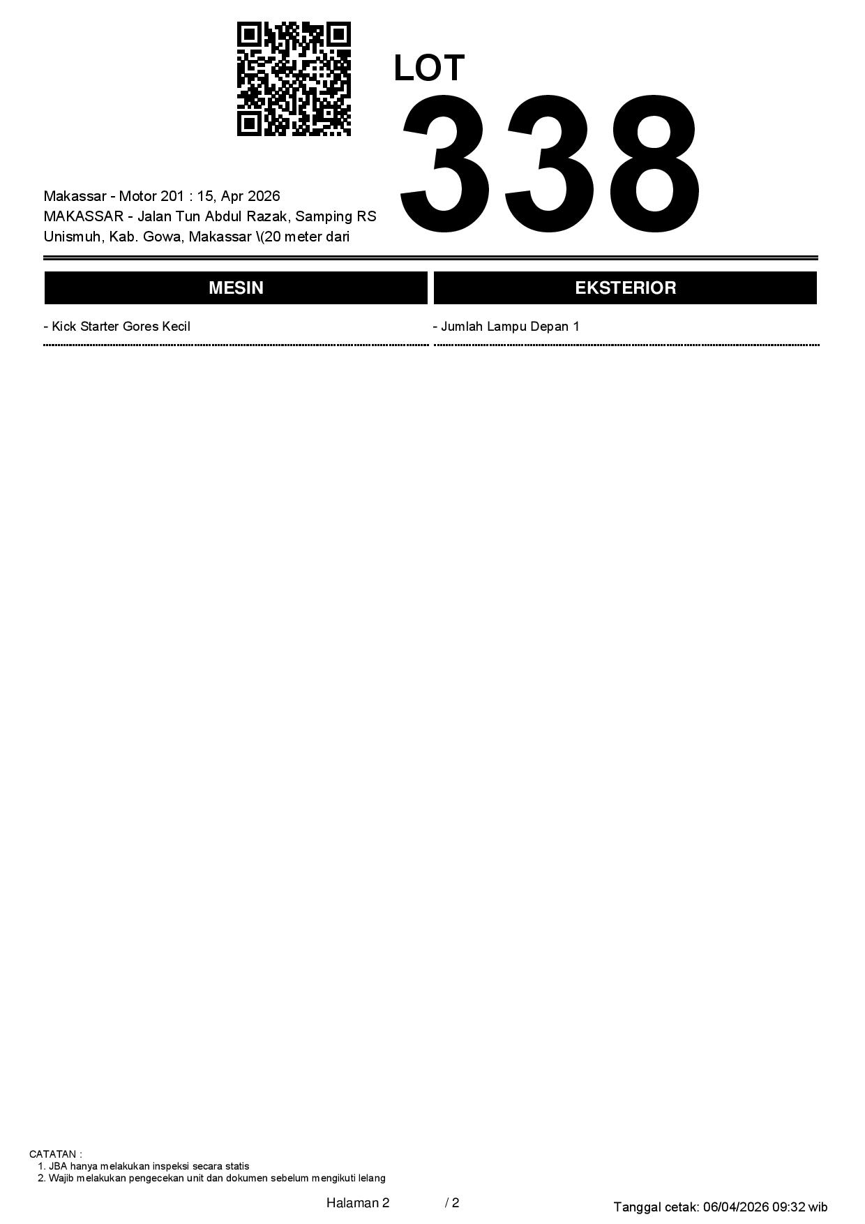 2. Peserta lelang wajib cek unit & dokumen