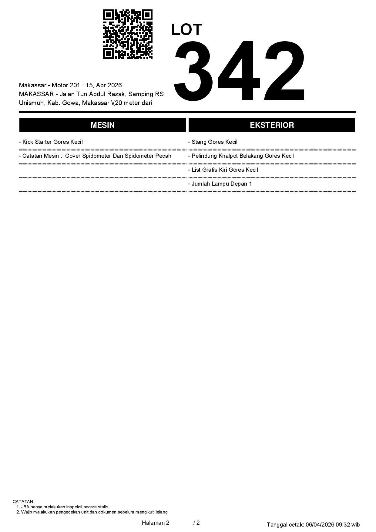 2. Peserta lelang wajib cek unit & dokumen