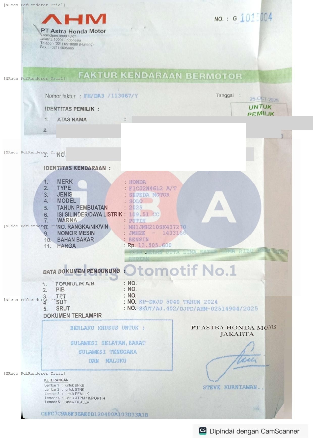 Nomor Rangka