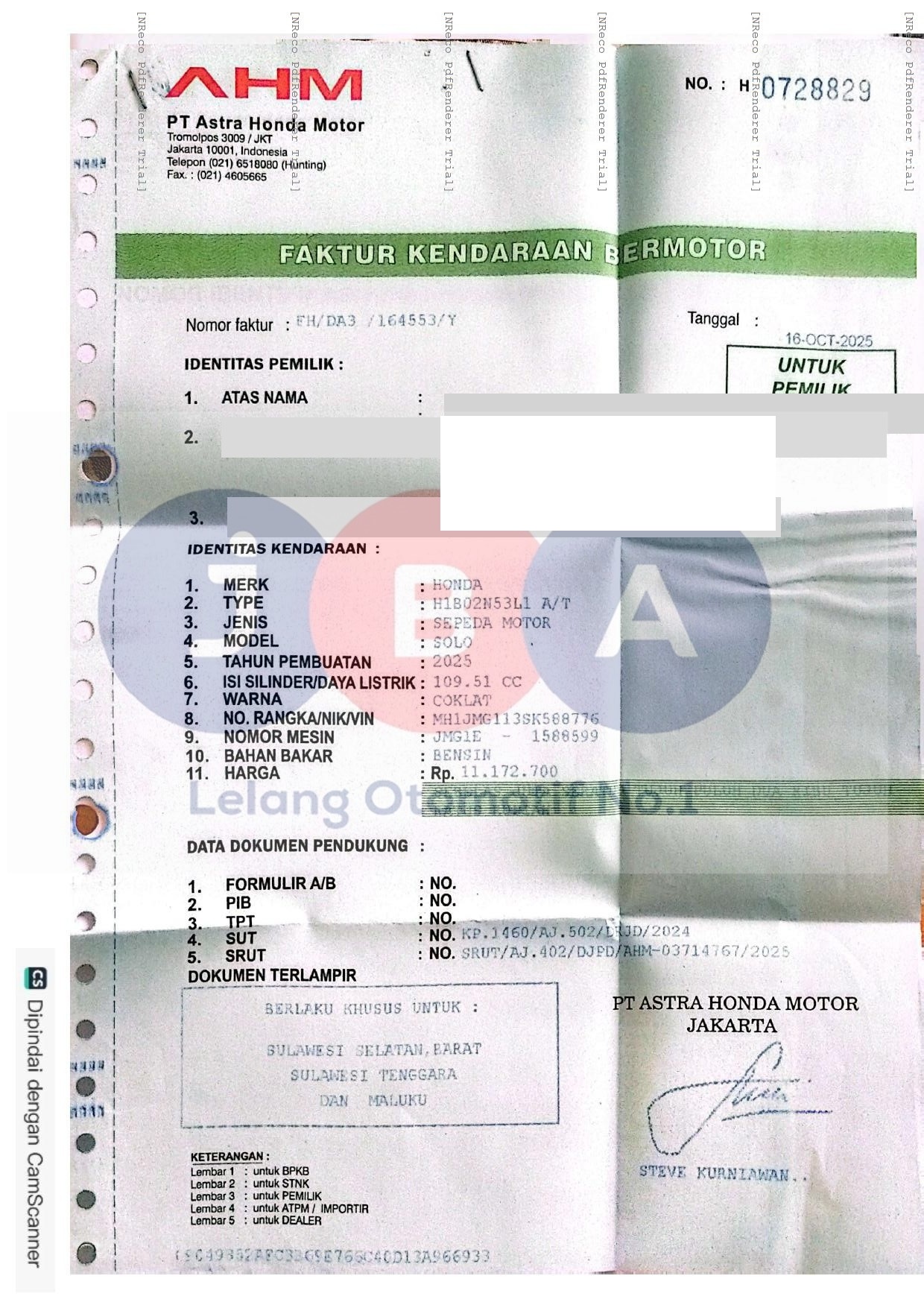 Nomor Rangka
