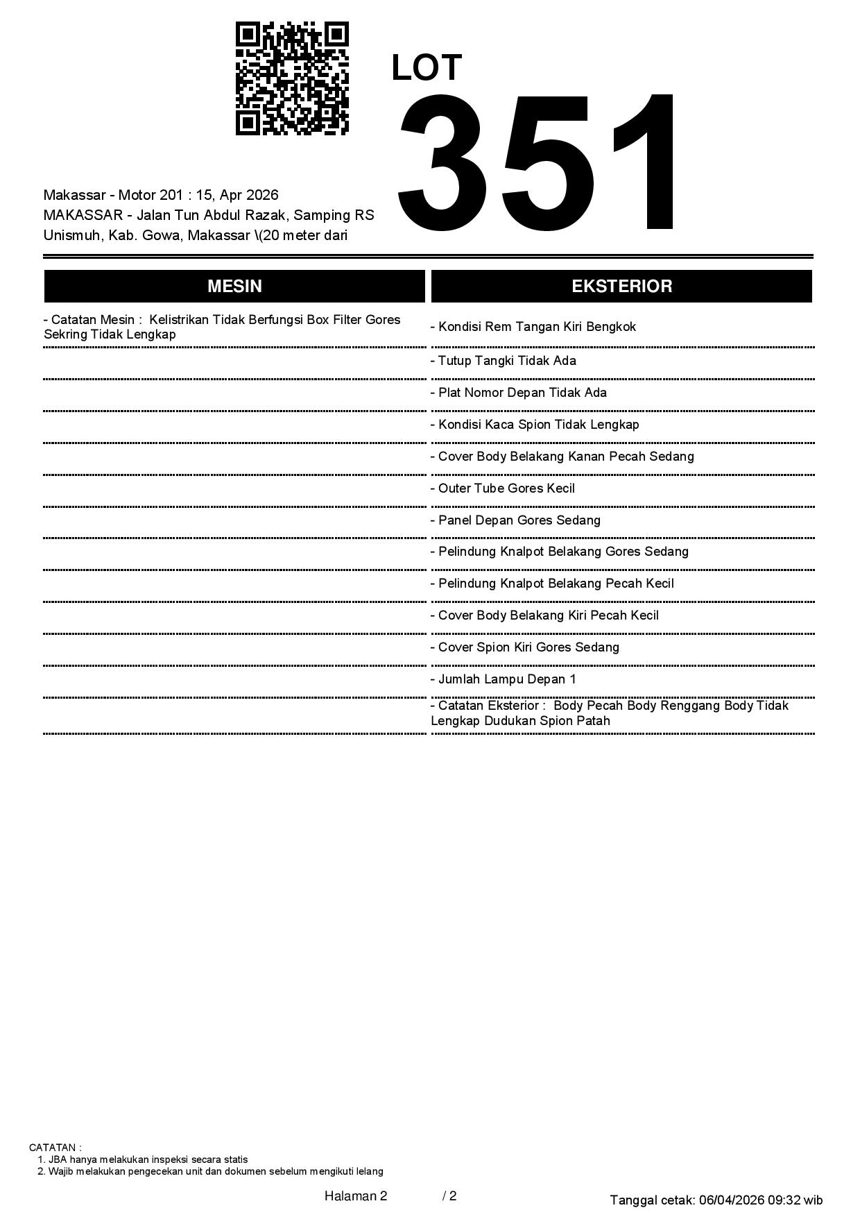 2. Peserta lelang wajib cek unit & dokumen