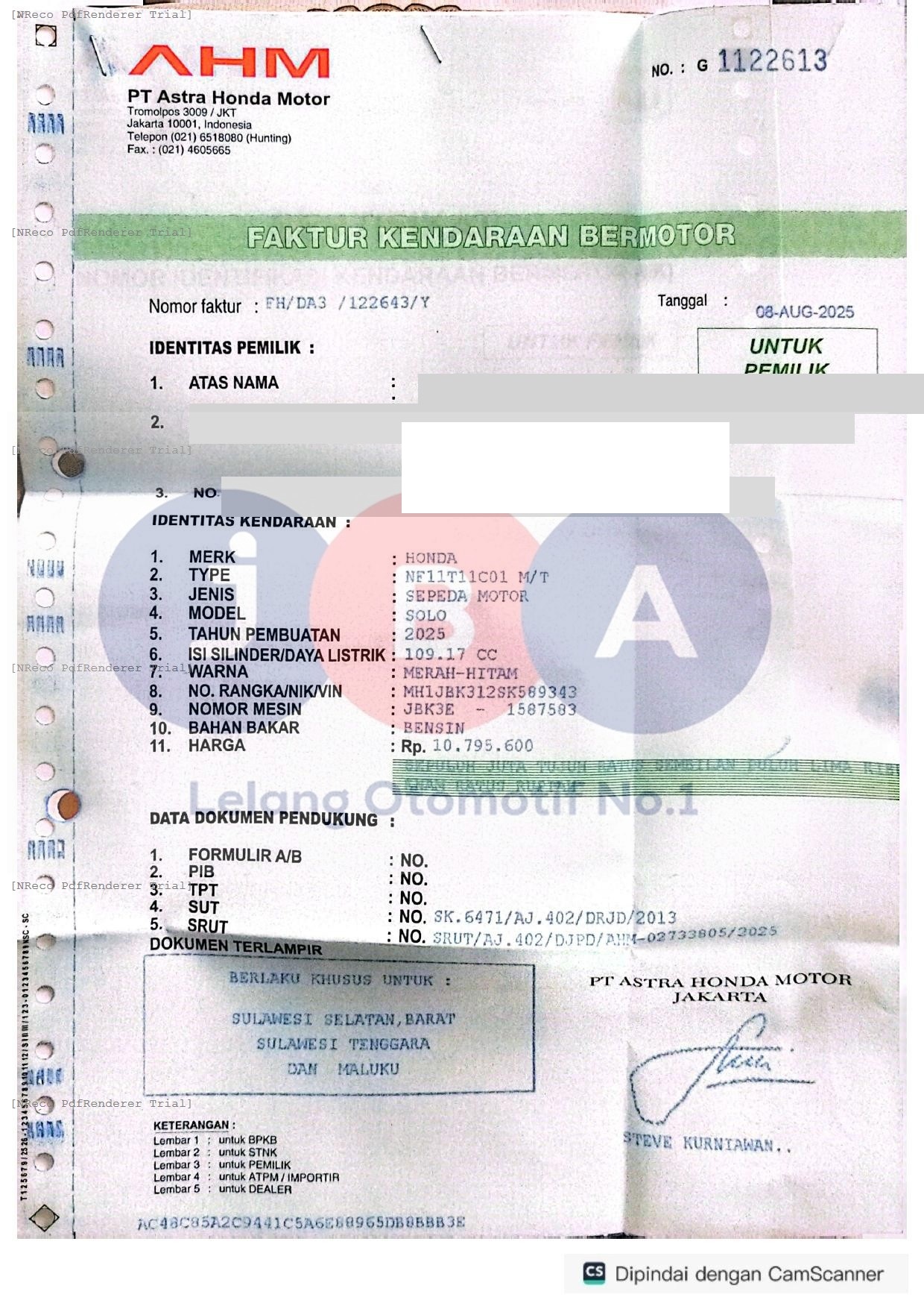 Nomor Rangka
