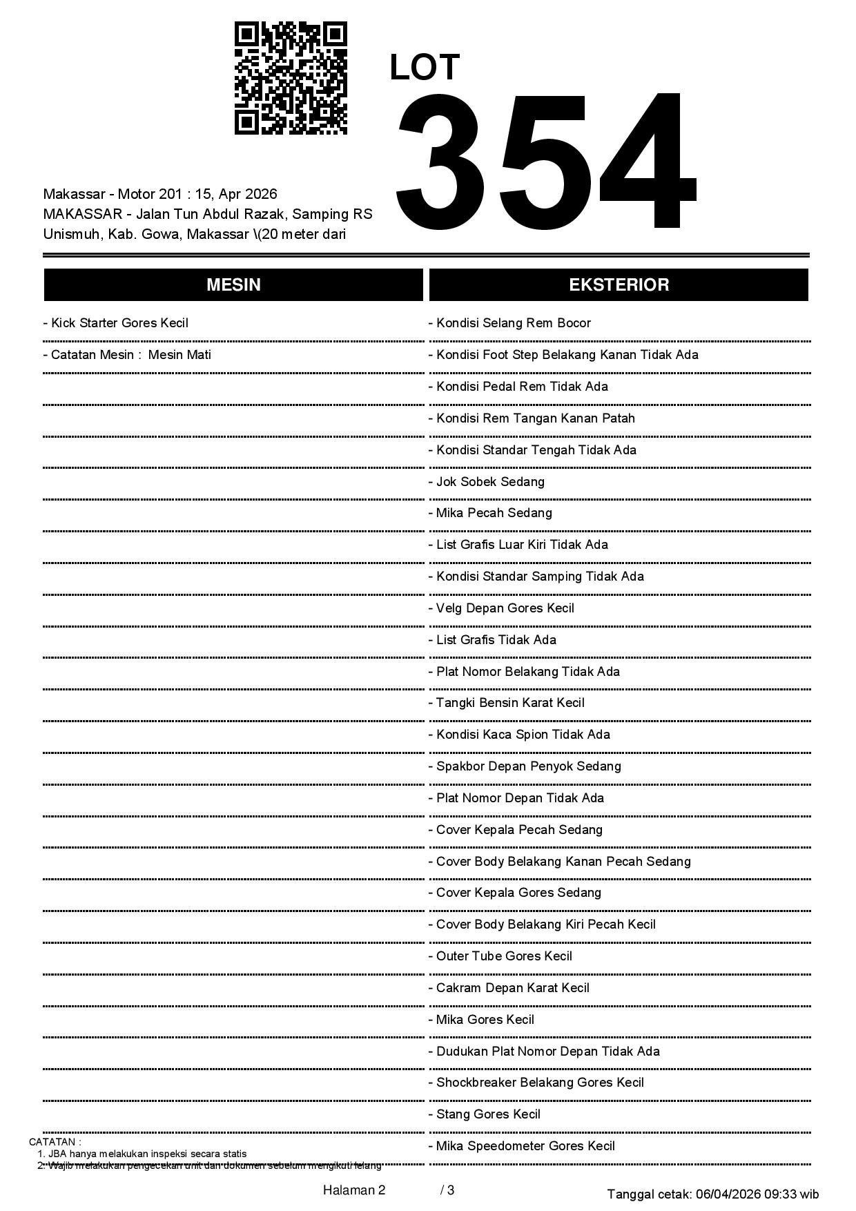 2. Peserta lelang wajib cek unit & dokumen