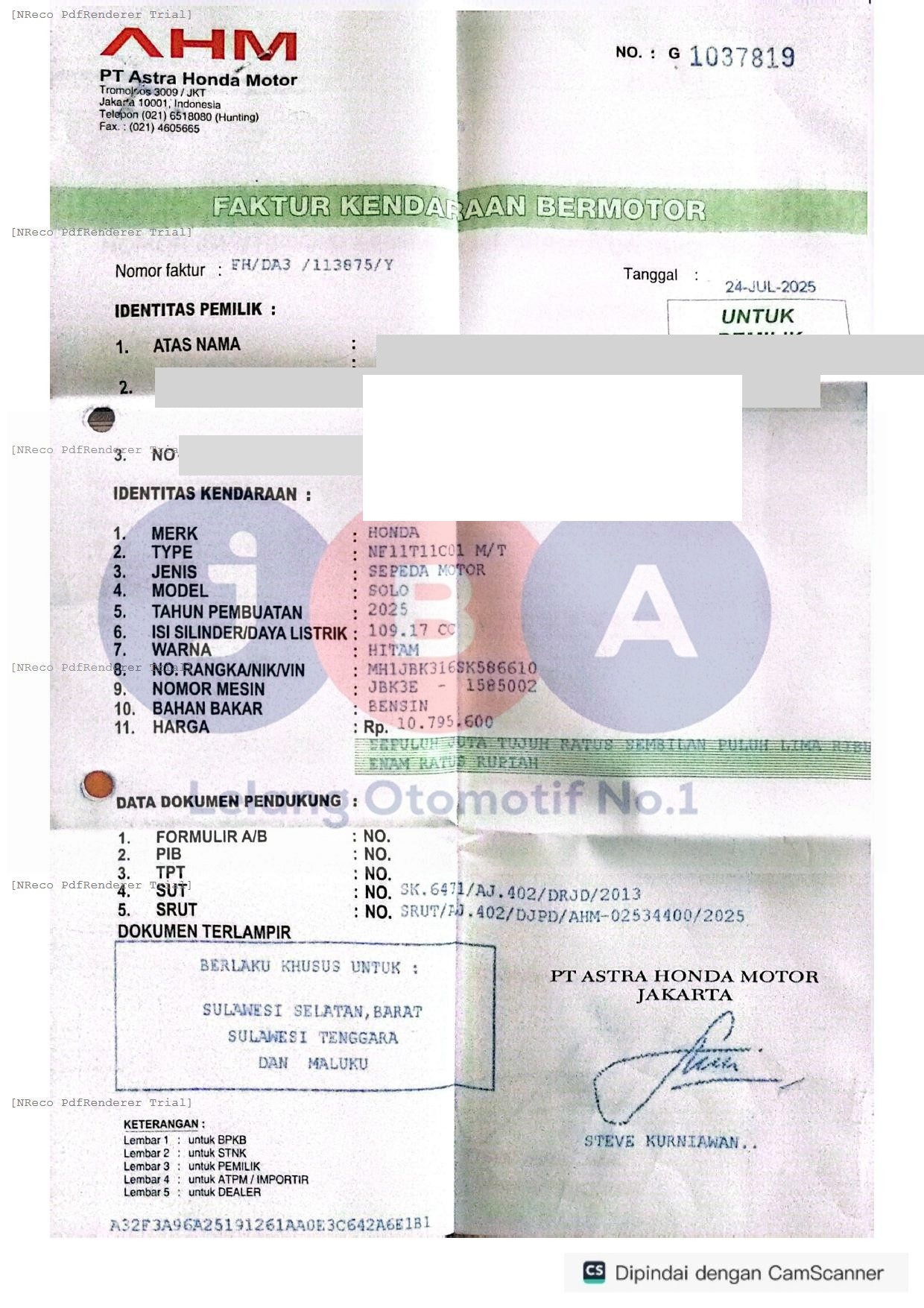 Nomor Rangka
