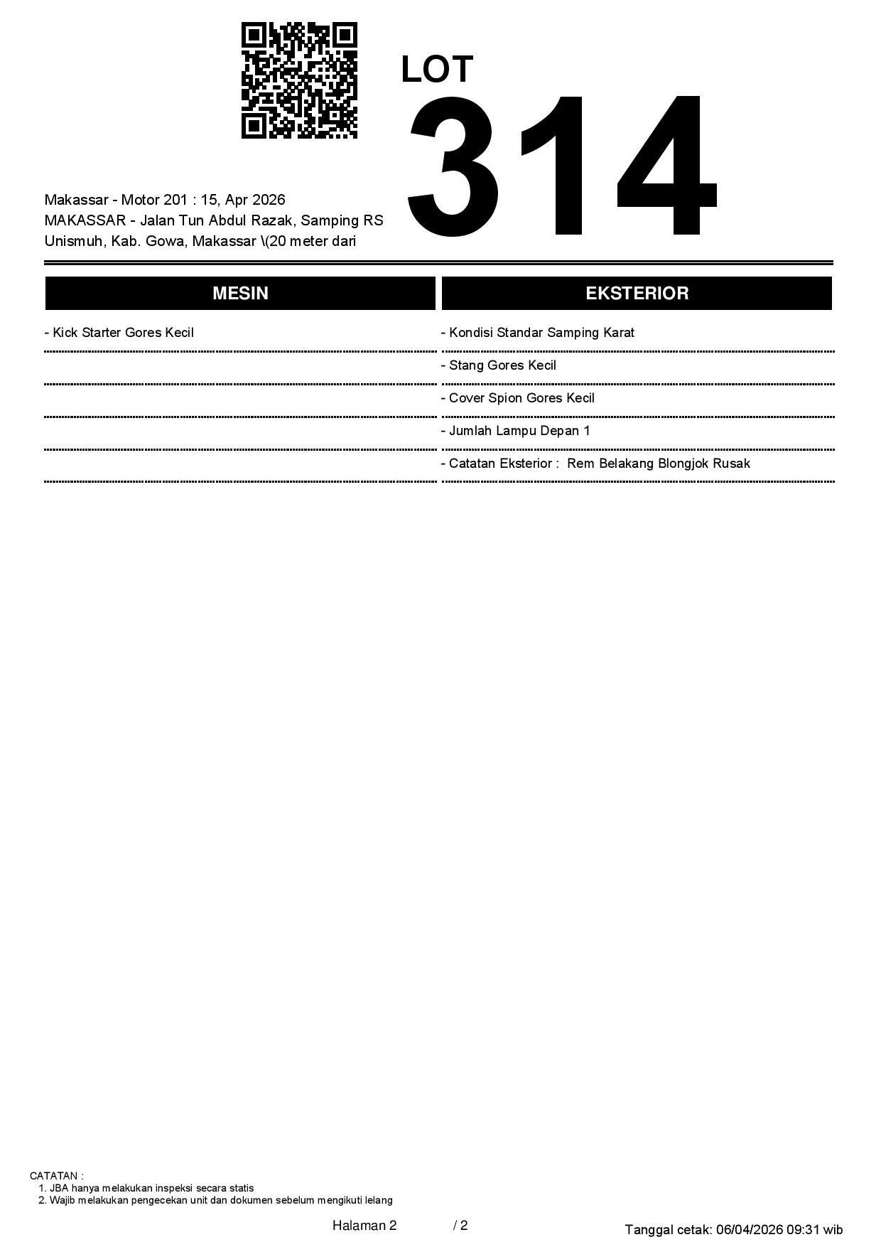2. Peserta lelang wajib cek unit & dokumen