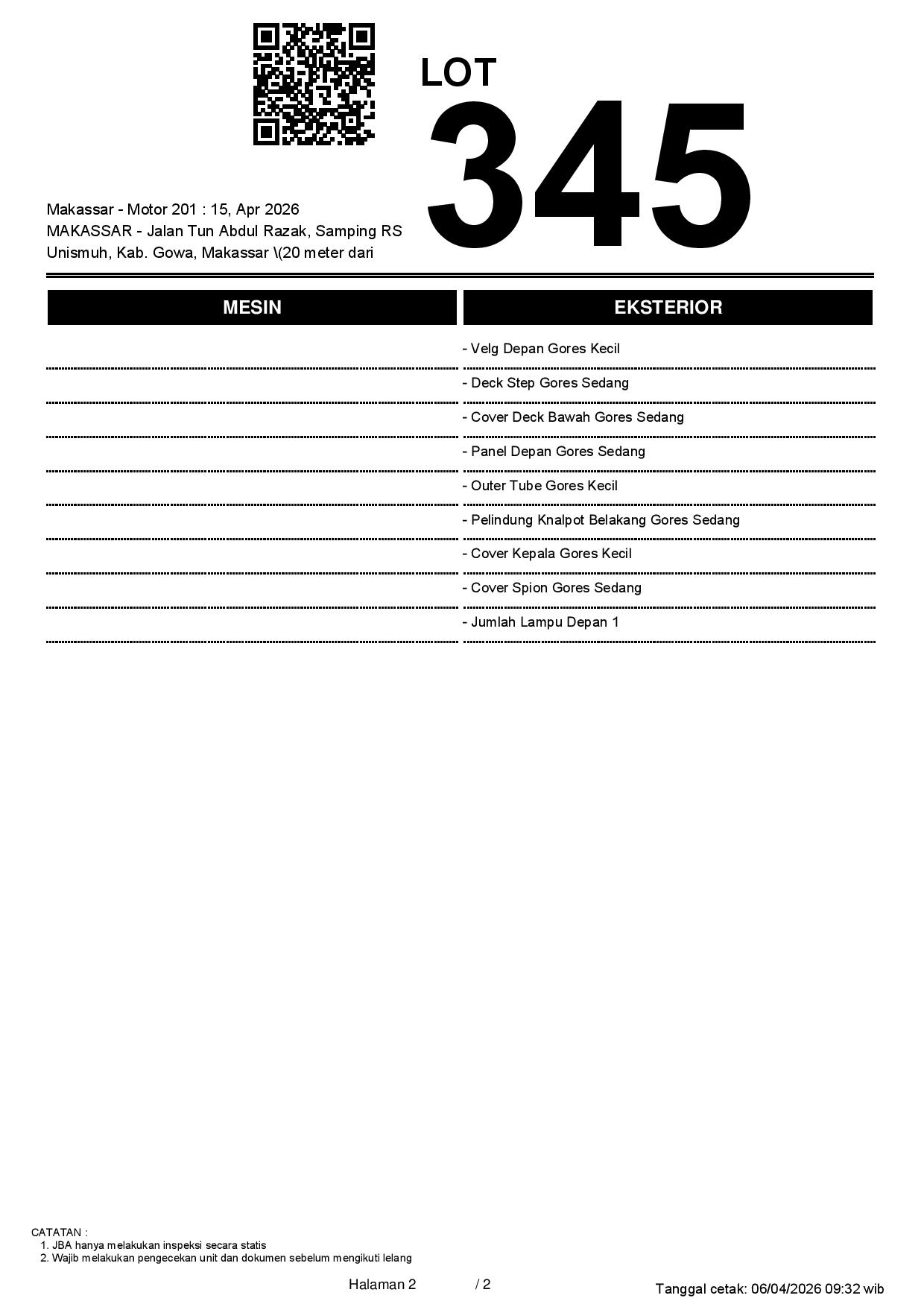 2. Peserta lelang wajib cek unit & dokumen