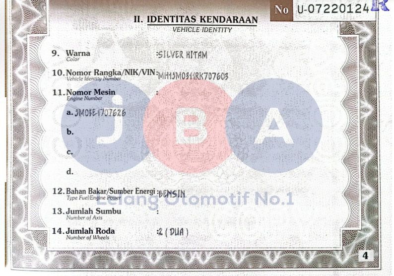 WARNA UNIT DI SAMSAT ONLINE SILVER HITAM//NOPOL FISIK TA//PENULISAN NOSIN DI BPKB 1 DIGIT TDK JELAS//PEMENANG WAJIB TANDA TANGAN SURAT PERNYATAAN BERMATERAI DI JBA