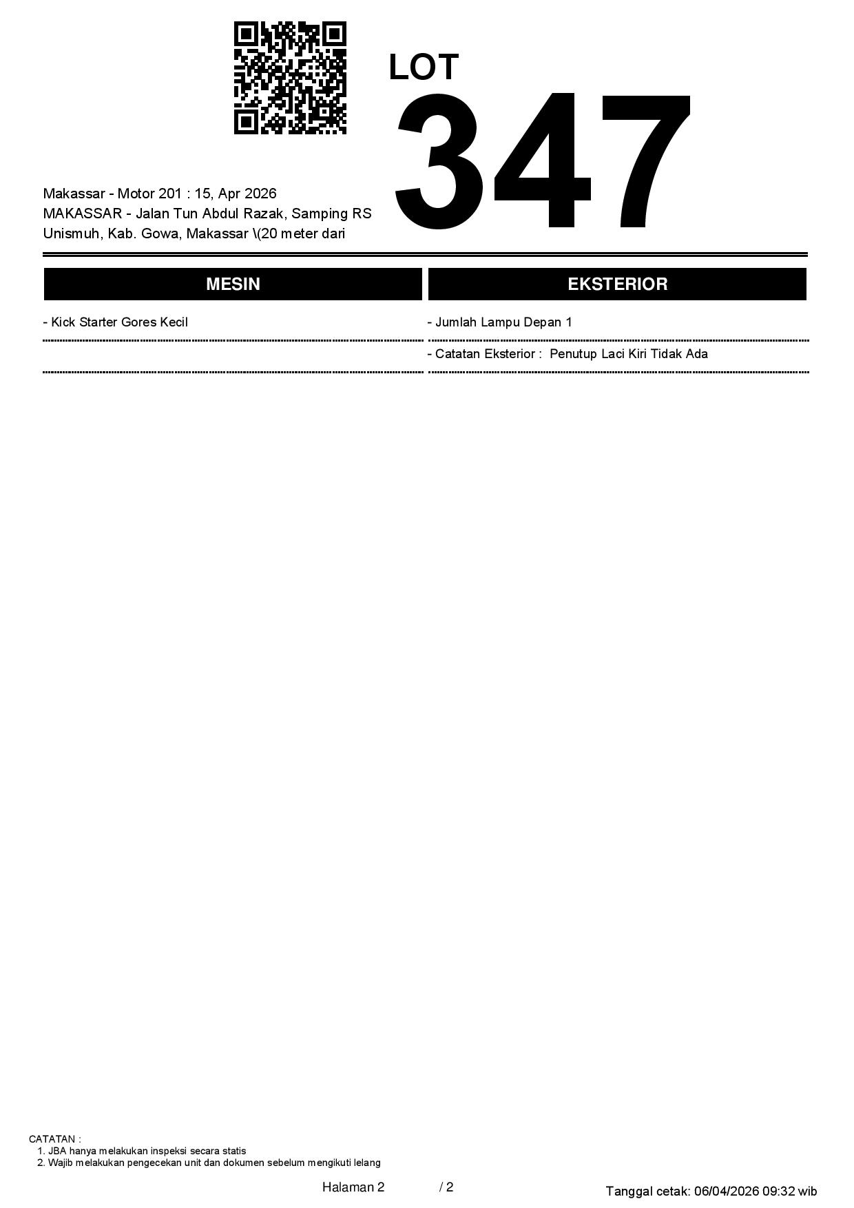 2. Peserta lelang wajib cek unit & dokumen