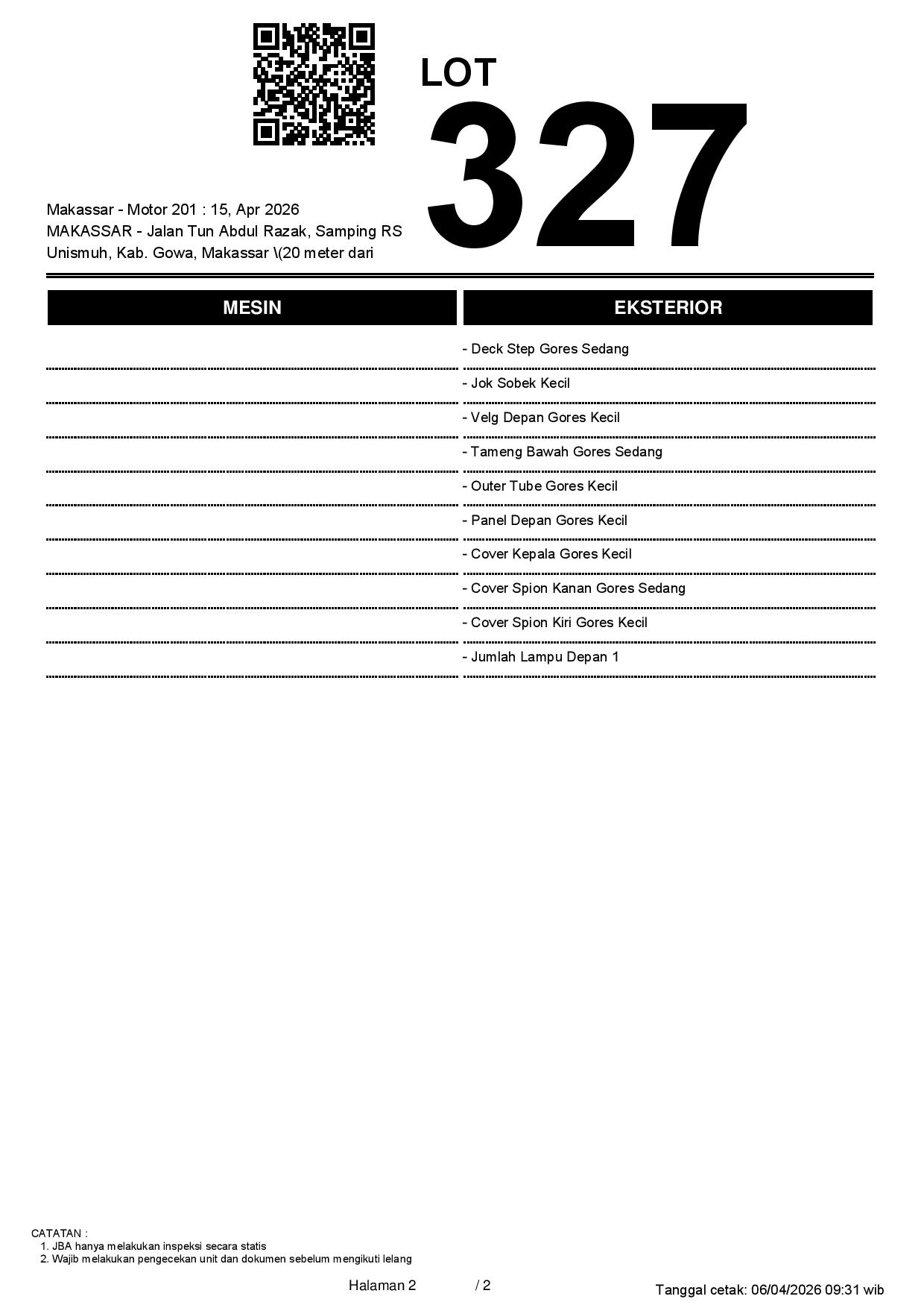 2. Peserta lelang wajib cek unit & dokumen
