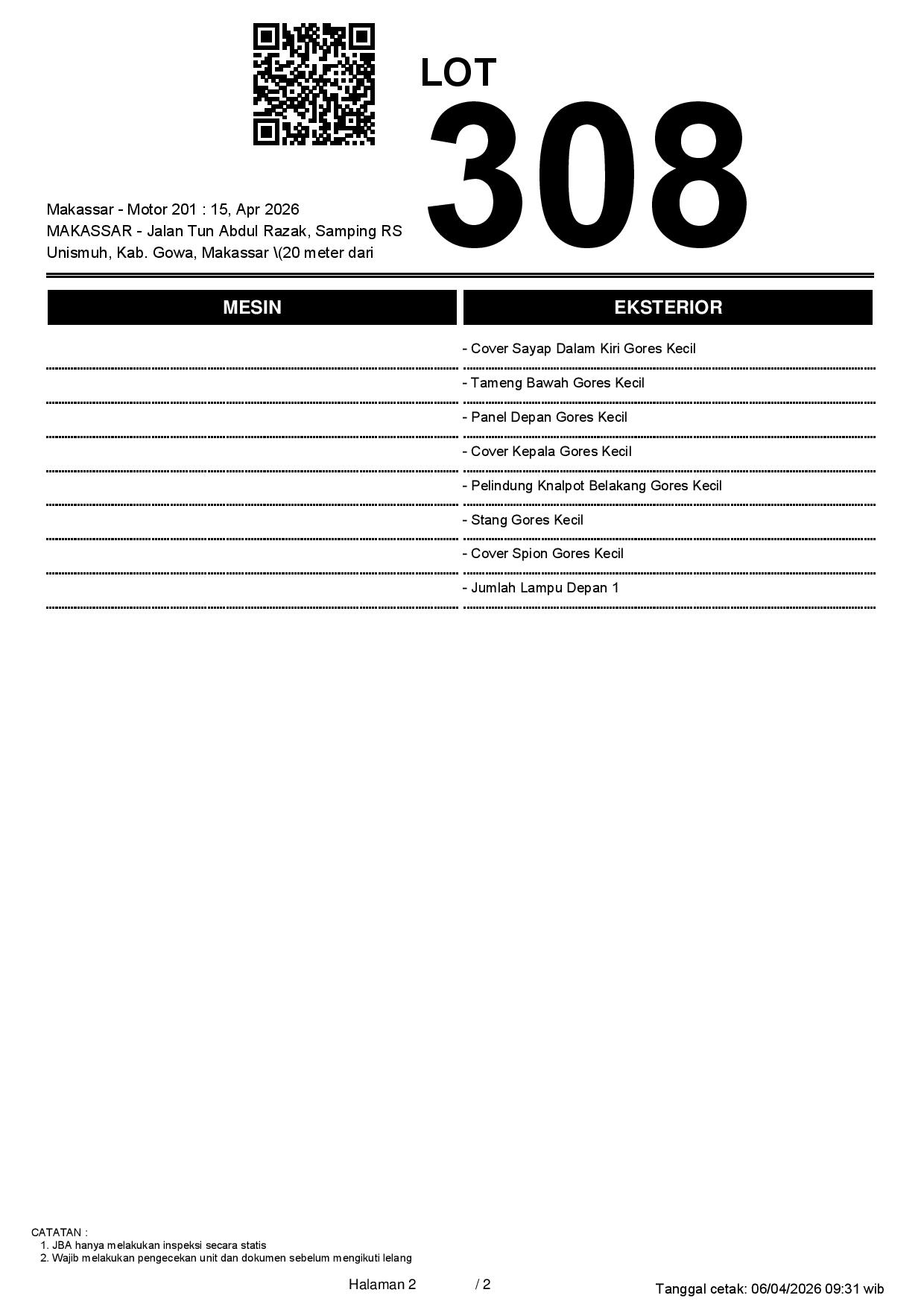 2. Peserta lelang wajib cek unit & dokumen