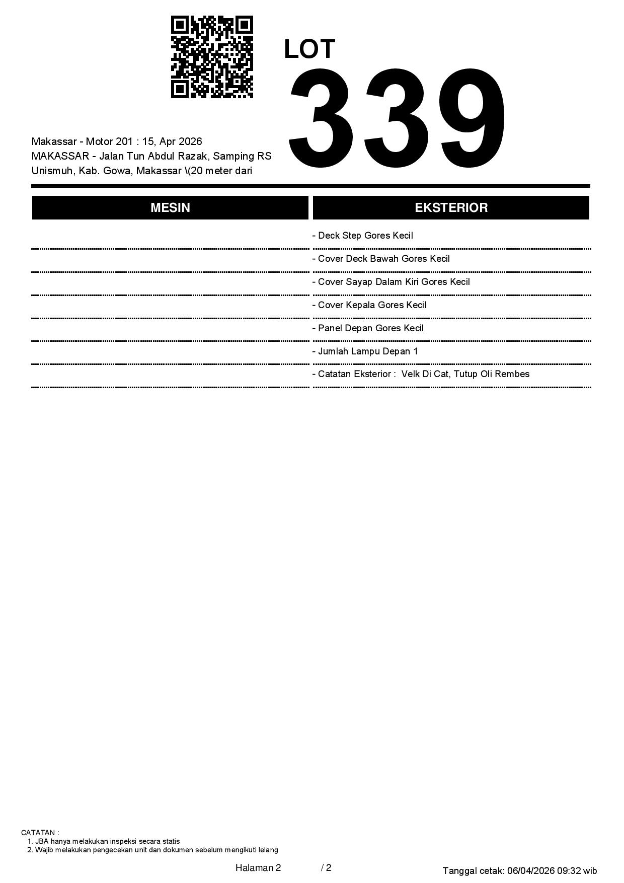 2. Peserta lelang wajib cek unit & dokumen