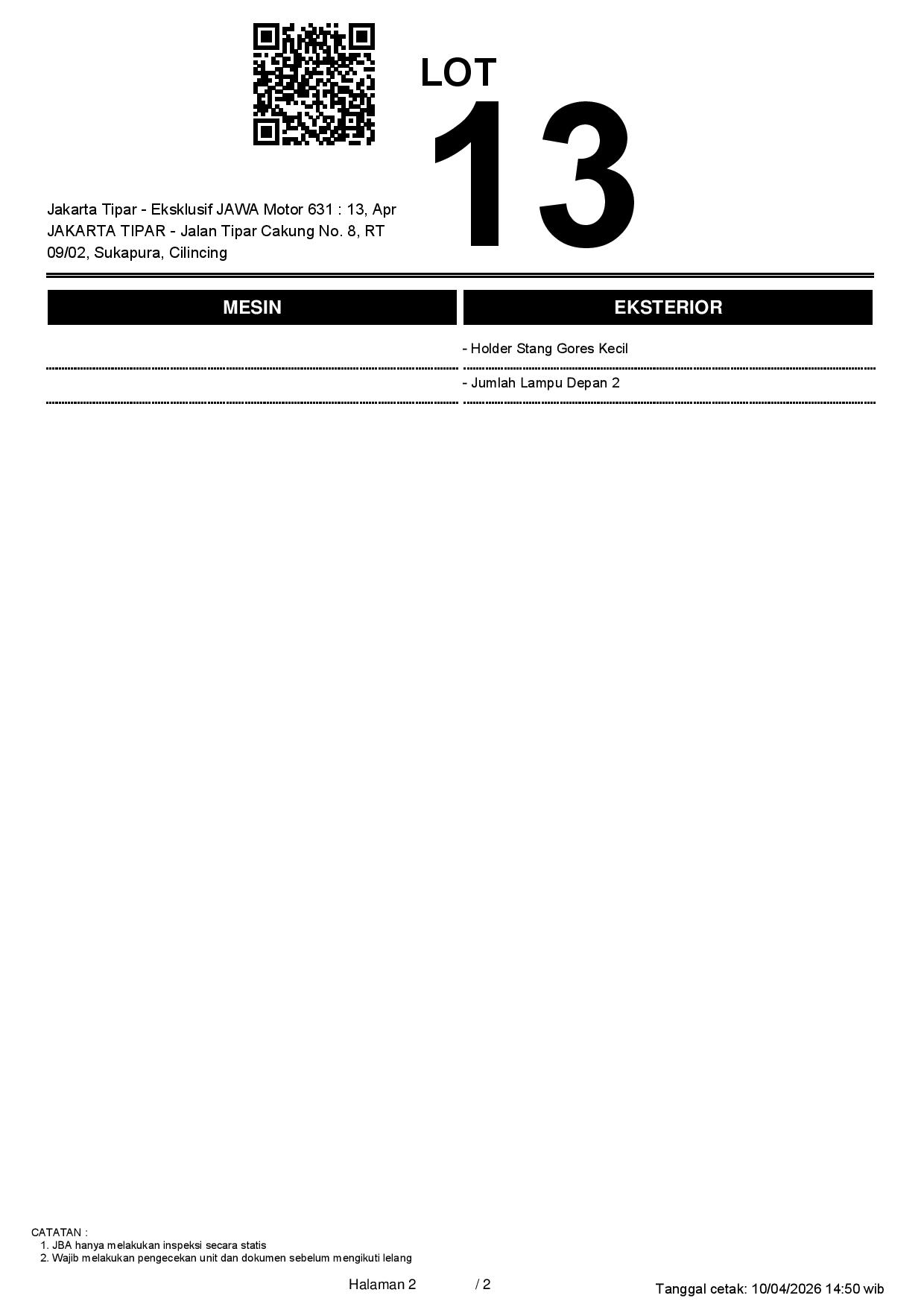 Tanggal Lelang: 13/04/2026 13:00 | WIB