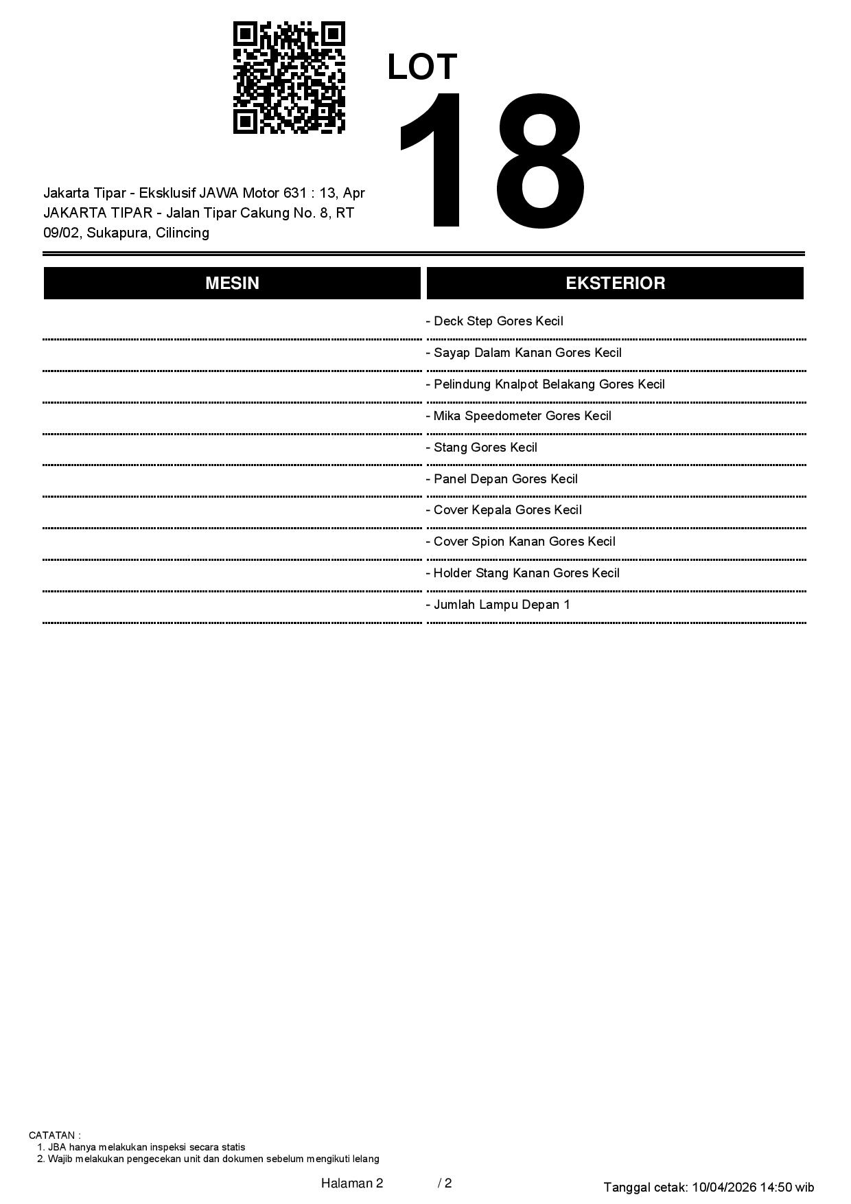 2. Peserta lelang wajib cek unit & dokumen