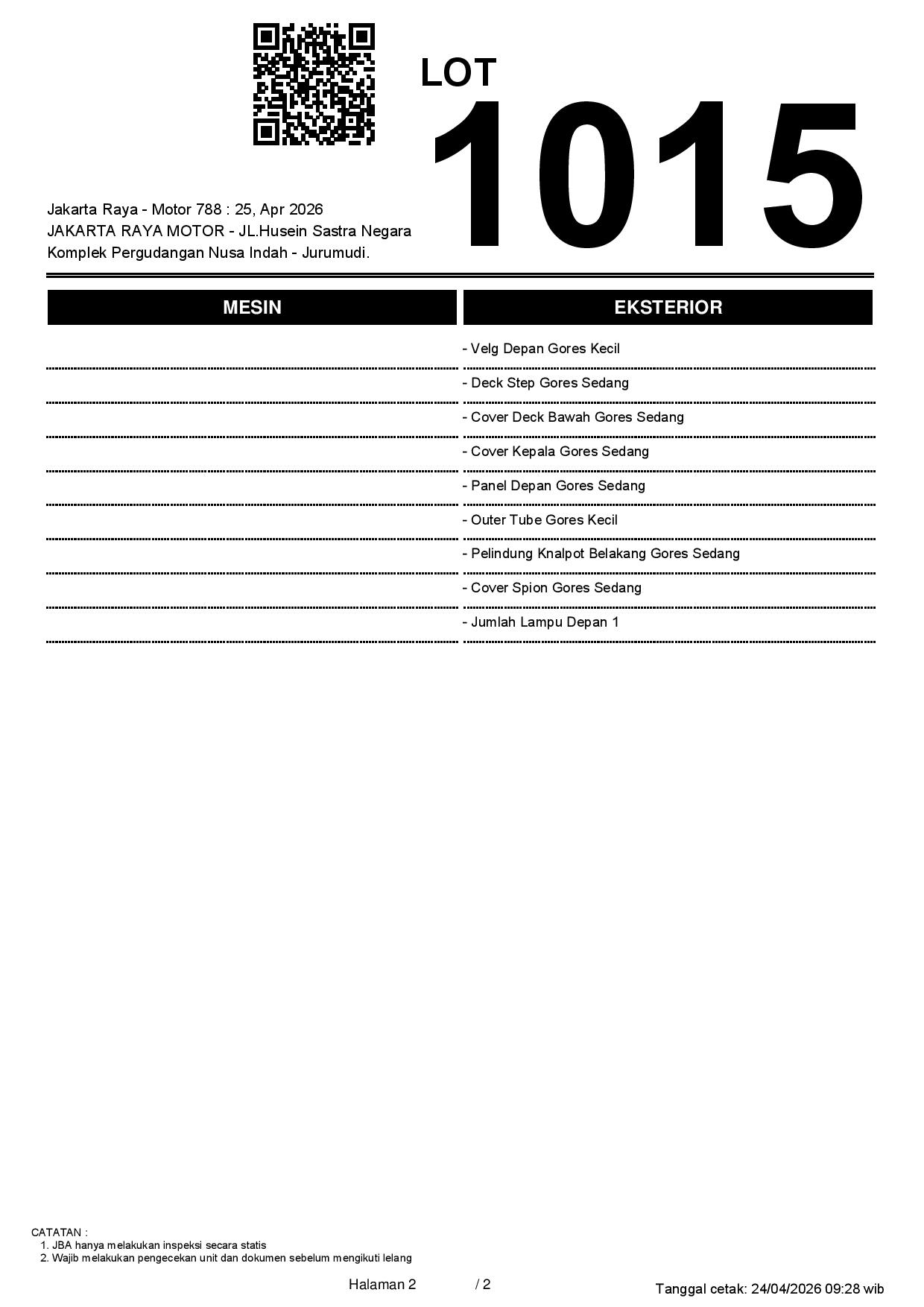 2. Peserta lelang wajib cek unit & dokumen