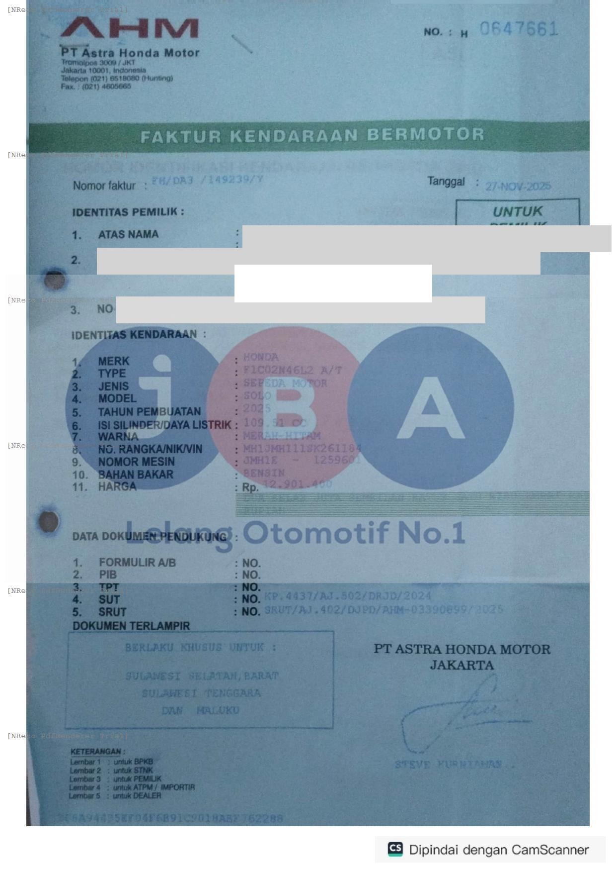 Nomor Rangka