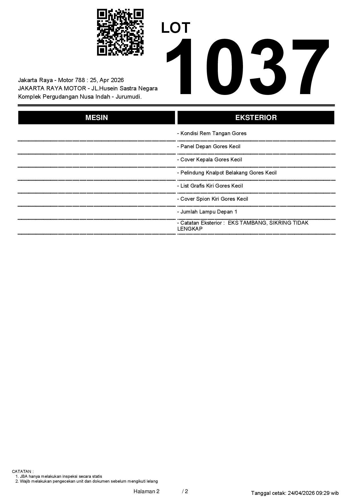 2. Peserta lelang wajib cek unit & dokumen