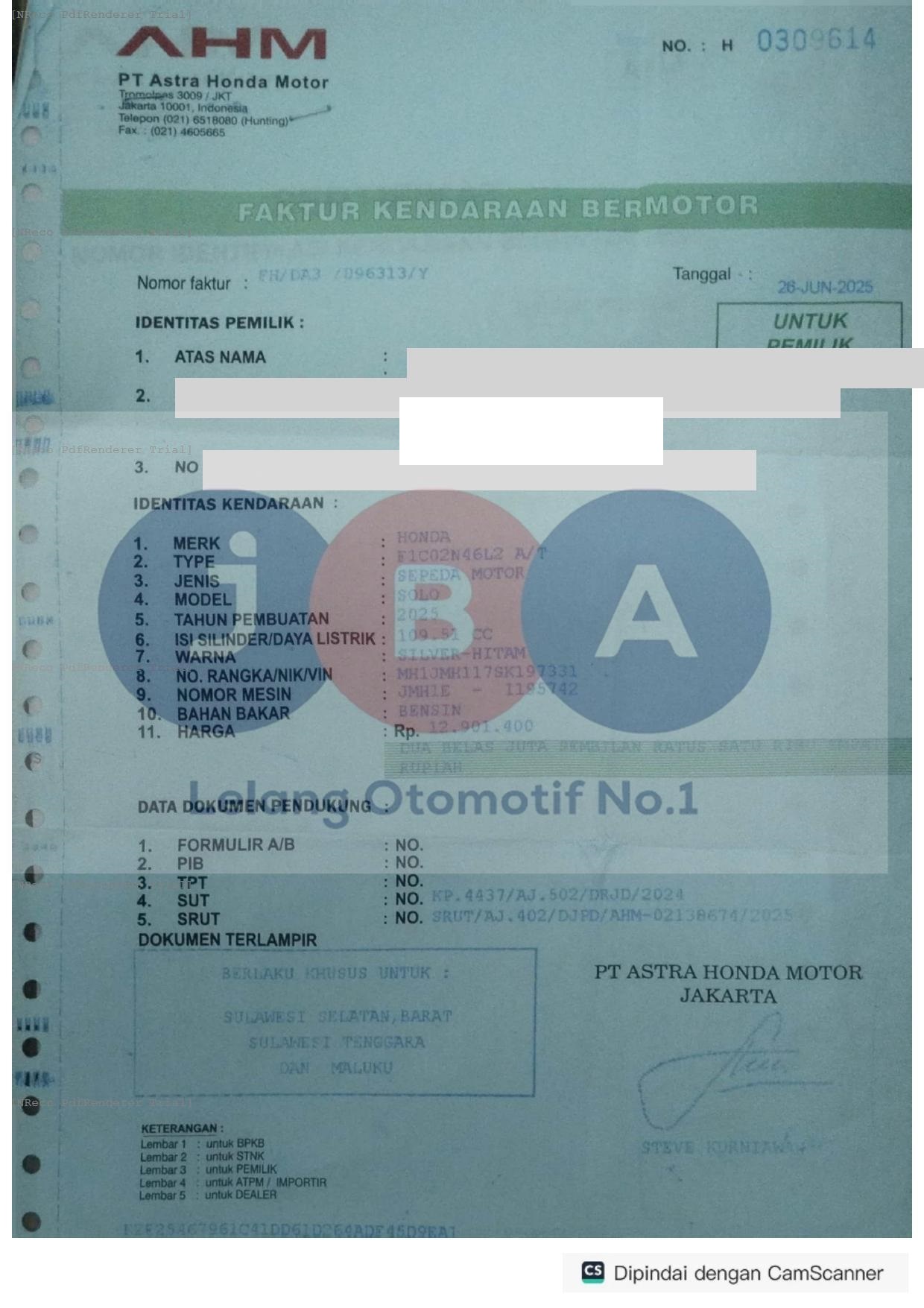 Nomor Rangka