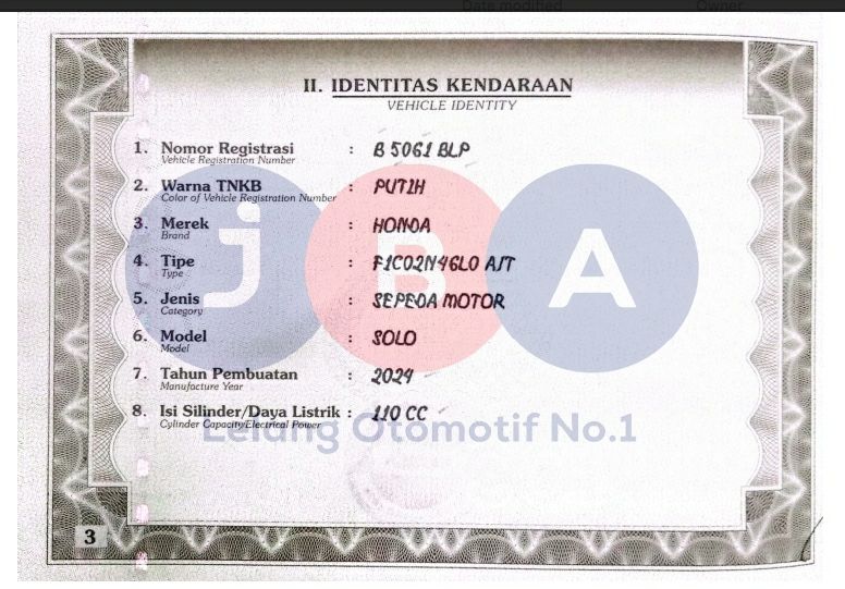 WARNA PADA STNK DAN NOTICE COKLAT CREAM SEDANGKAN PD BPKB DAN FAKTUR COKLAT KREM //NOPOL FISIK BELAKANG TA