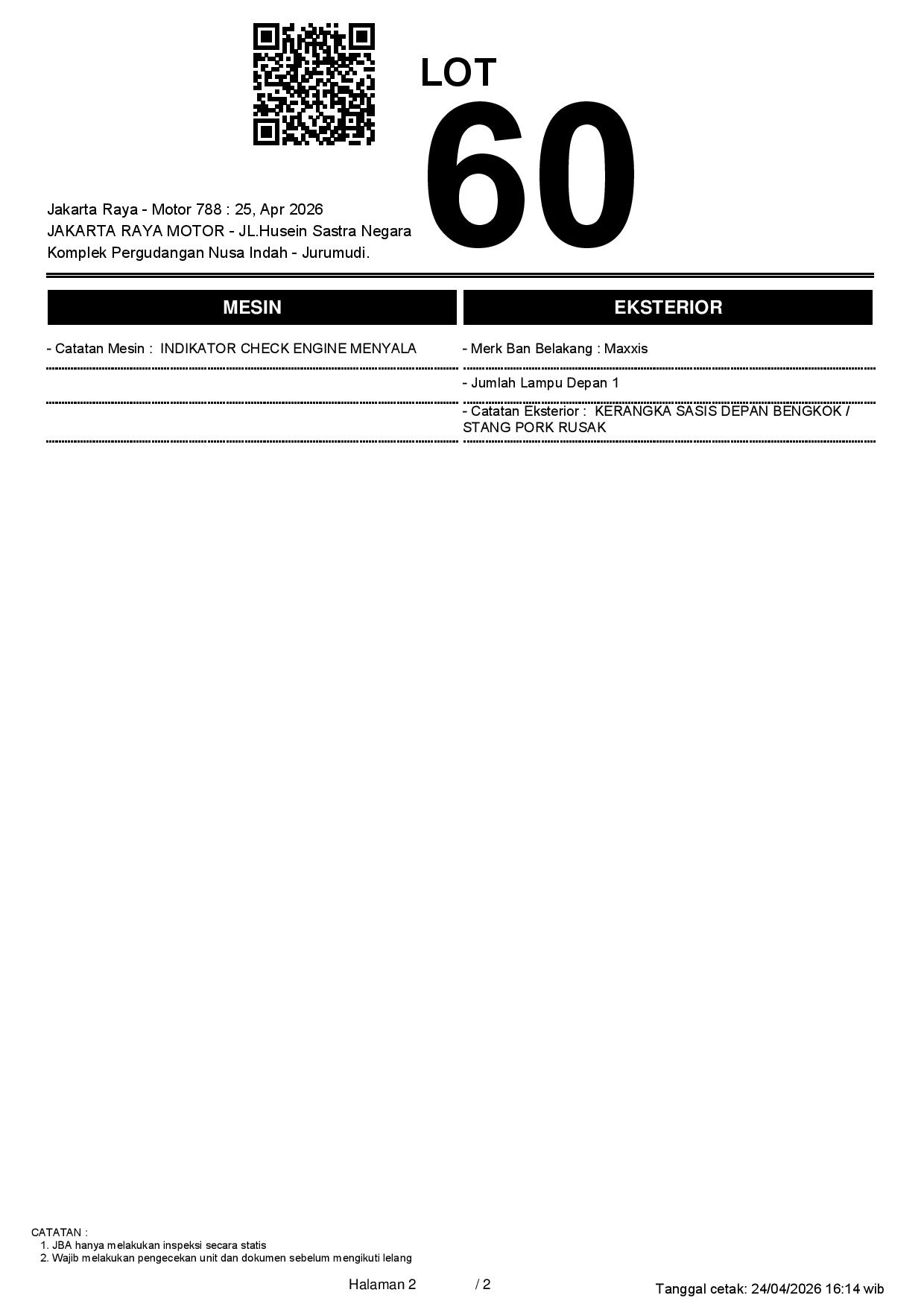 2. Peserta lelang wajib cek unit & dokumen