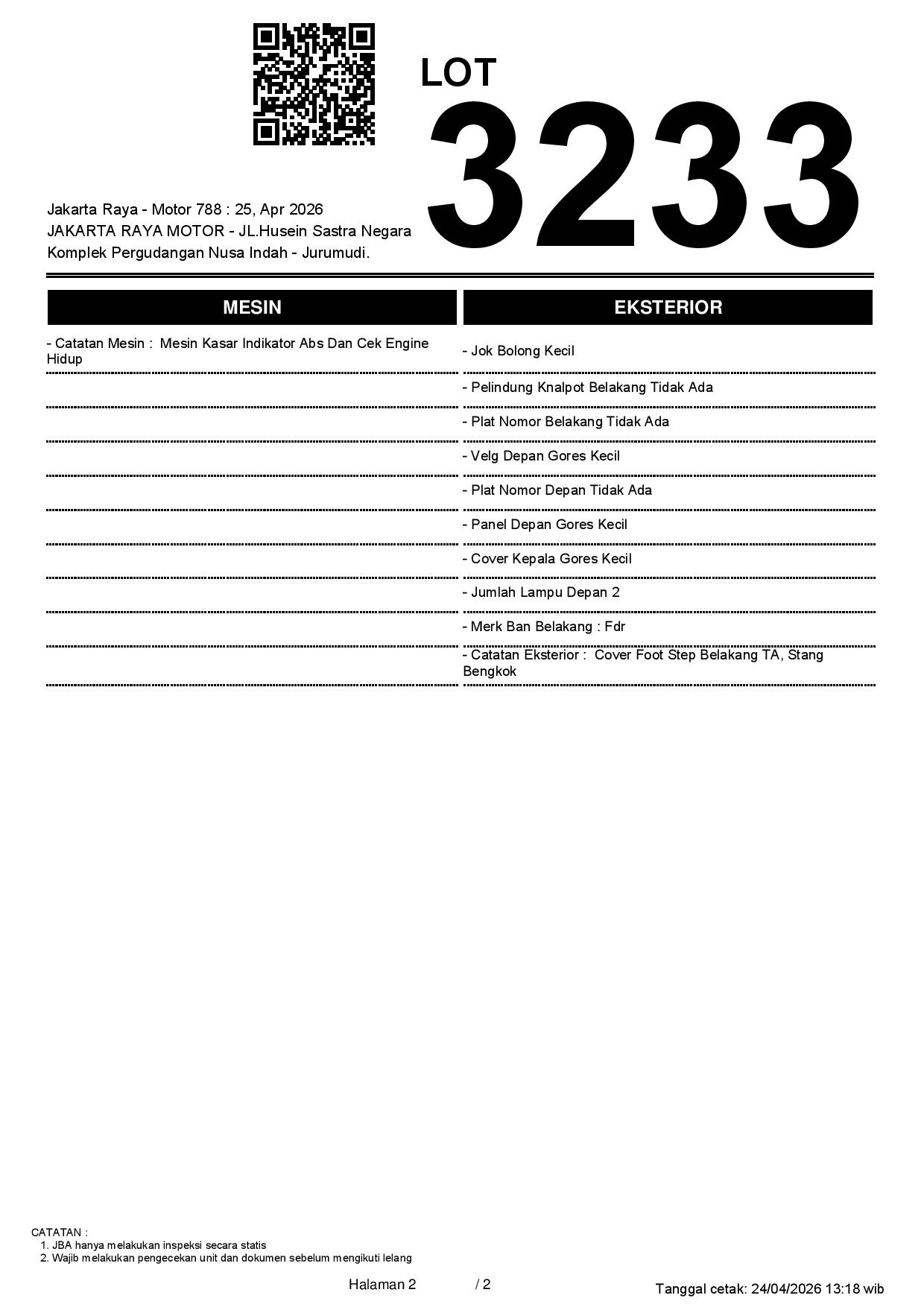 2. Peserta lelang wajib cek unit & dokumen