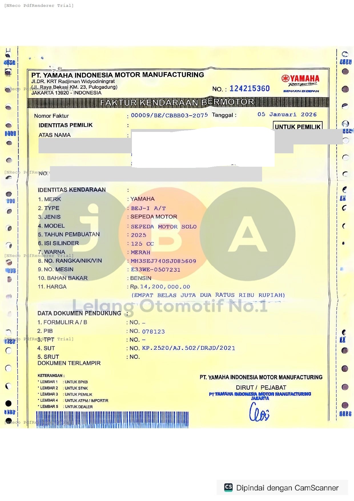 Nomor Rangka