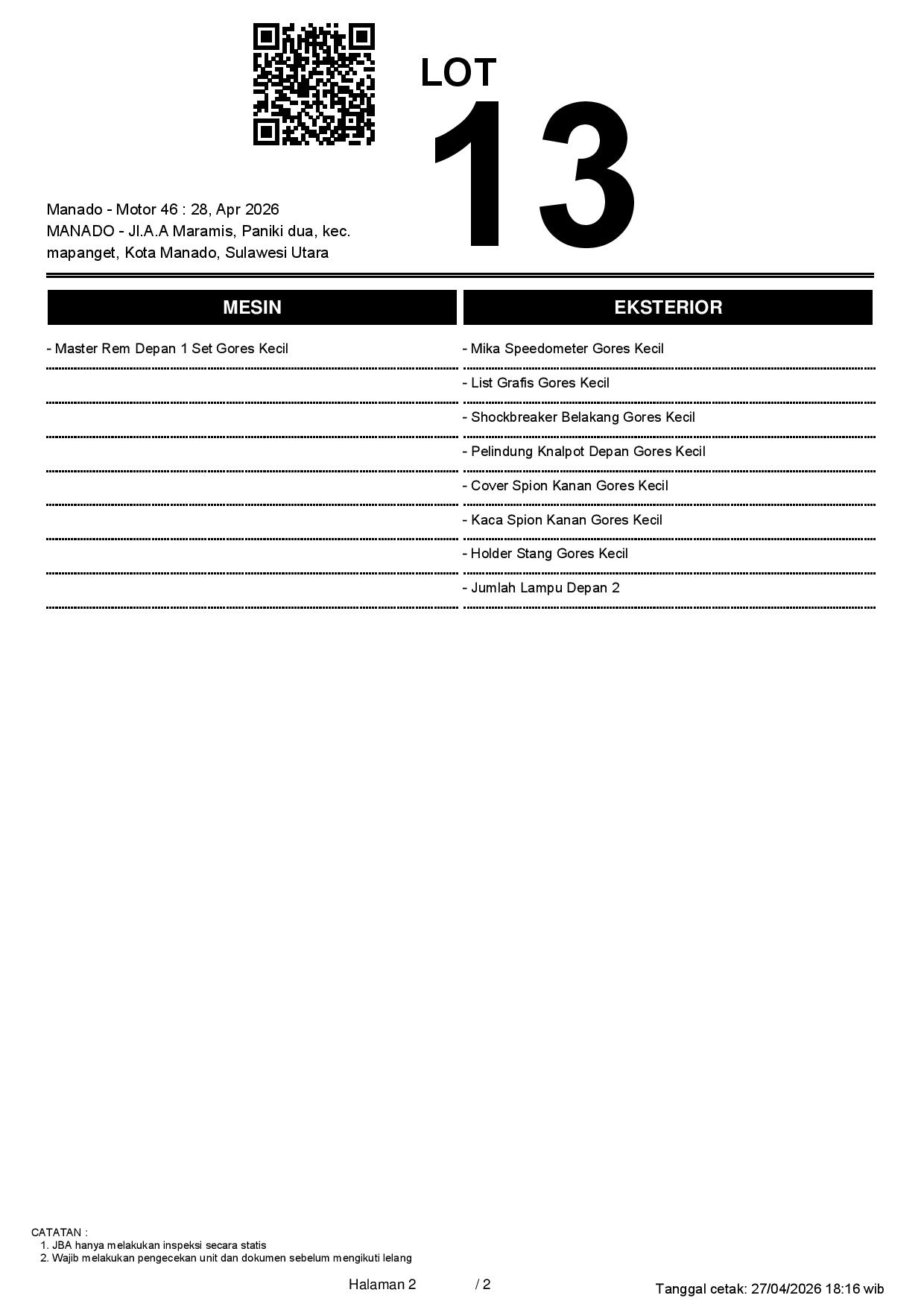 1. Peserta lelang wajib cek unit & dokumen