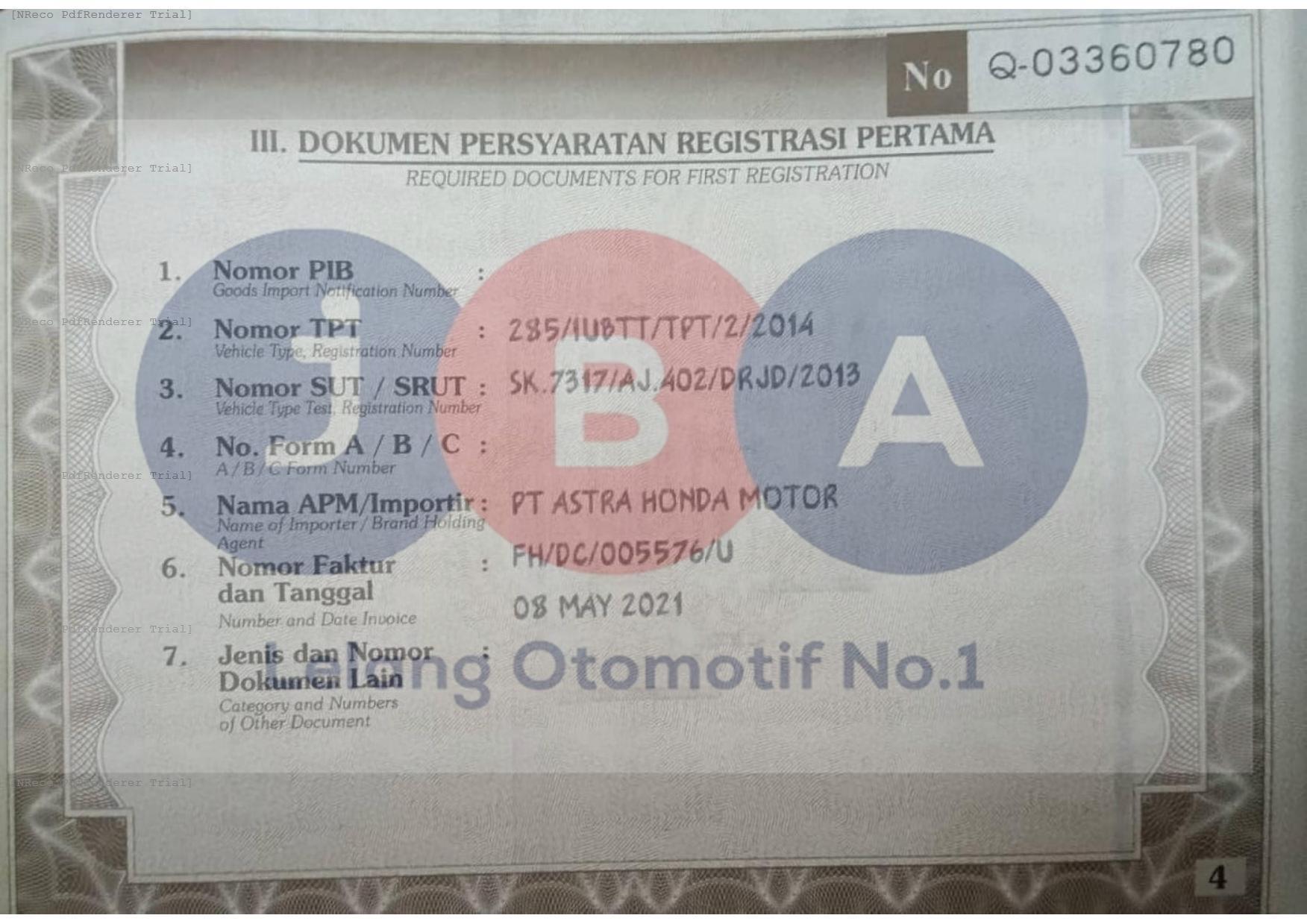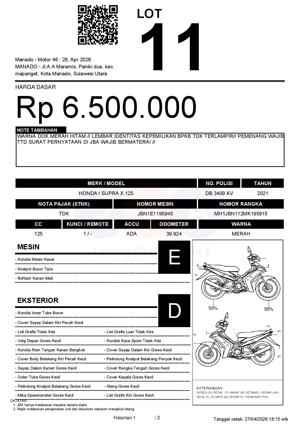 WARNA DOK MERAH HITAM // LEMBAR IDENTITAS KEPEMILIKAN BPKB TDK TERLAMPIR// PEMENANG WAJIB TTD SURAT PERNYATAAN DI JBA WAJIB BERMATERAI //