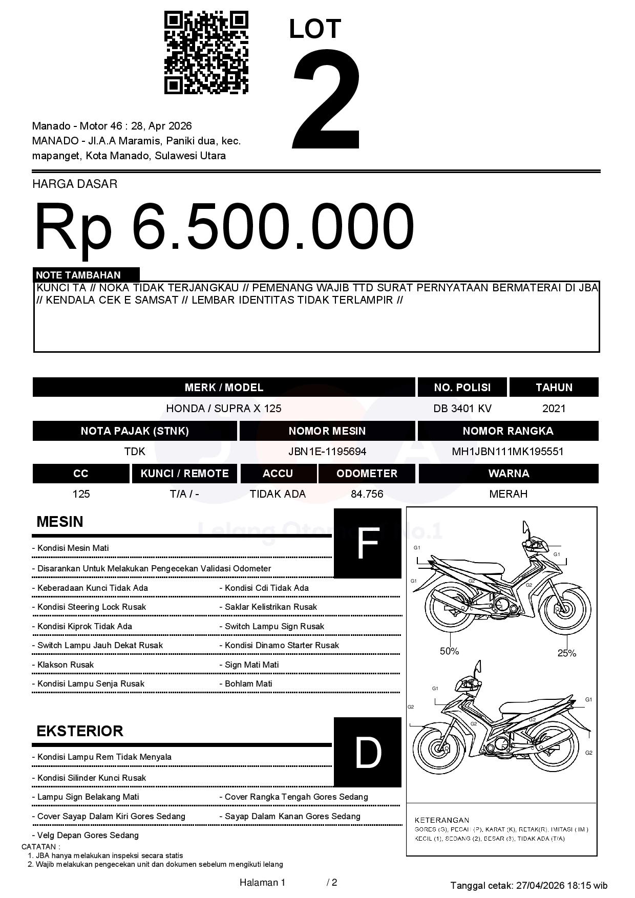 Tanggal Lelang: 28/04/2026 11:00 | WITA