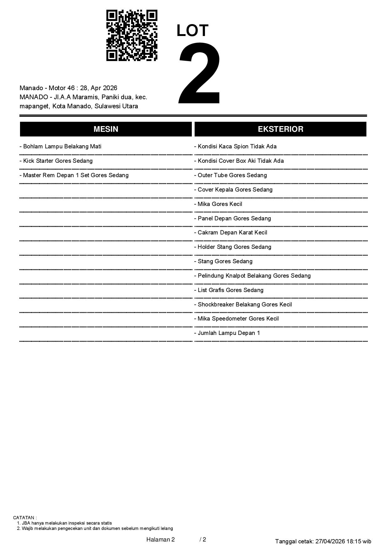 1. Peserta lelang wajib cek unit & dokumen