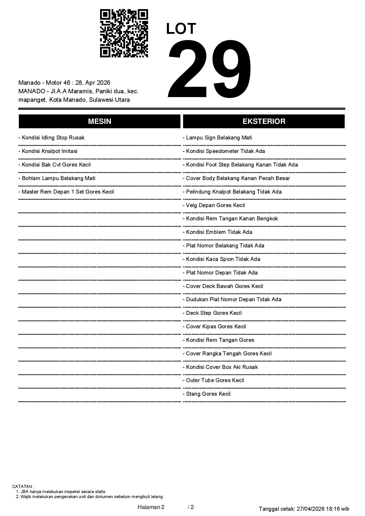2. Peserta lelang wajib cek unit & dokumen