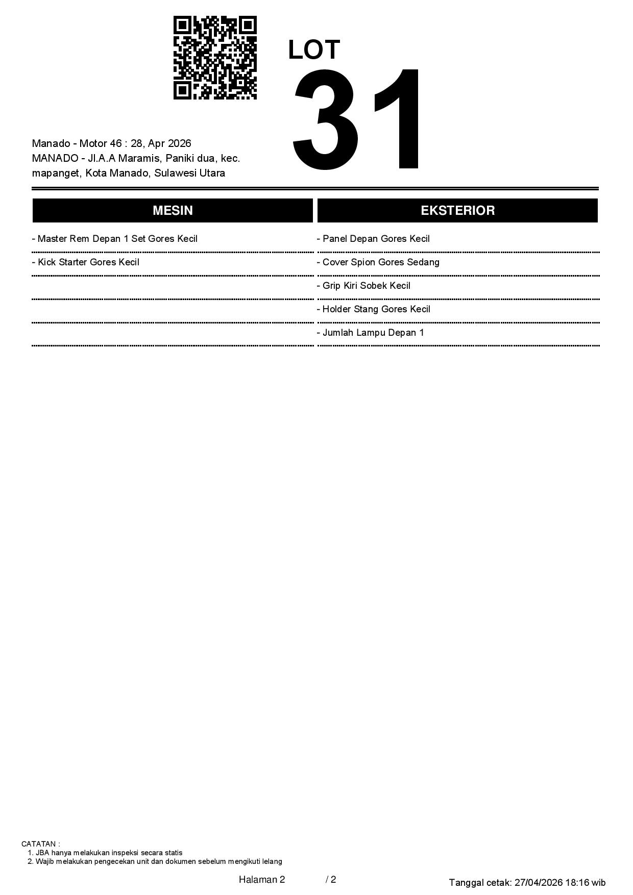 2. Peserta lelang wajib cek unit & dokumen
